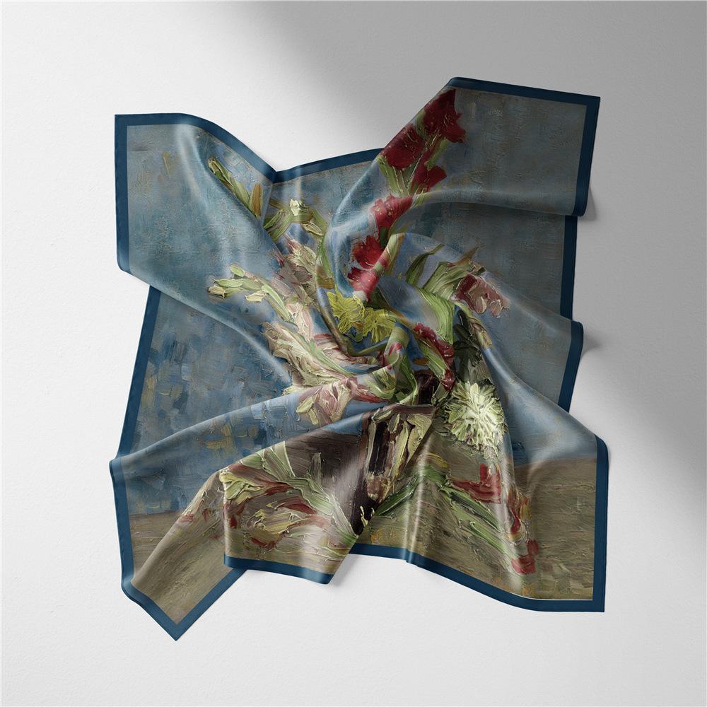 Квадратный твиловый шелковый платок 53 см Модный платок с цветочным принтом Маленький головной шейный хиджаб Женский платок Женская бандана Шаль Аксессуары Ювелирные изделия