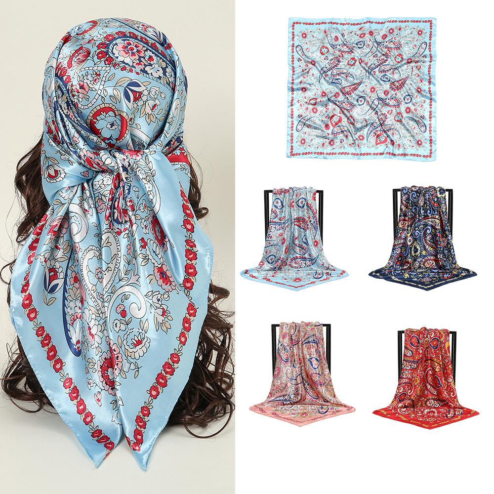 Европейский и американский квадратный платок 90 см, весенний новый, из искусственного шелка, цветной принт "кешью", большой квадратный шелковый платок