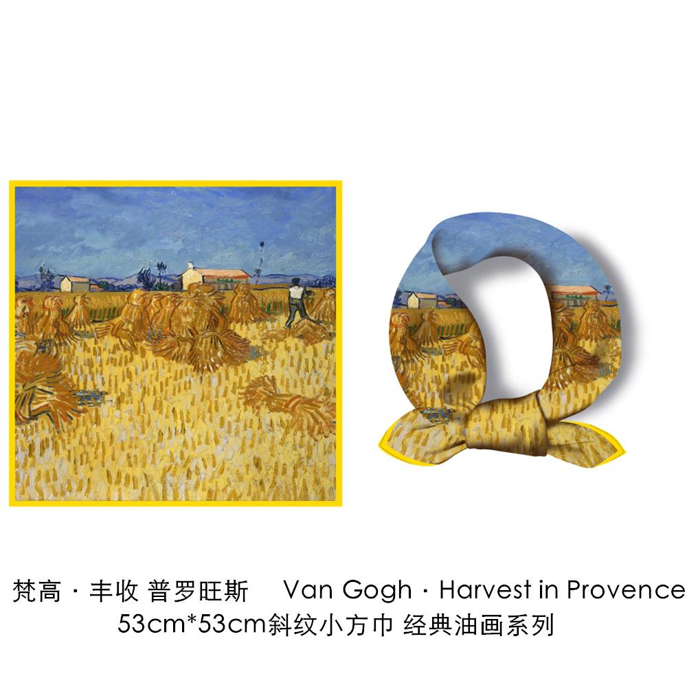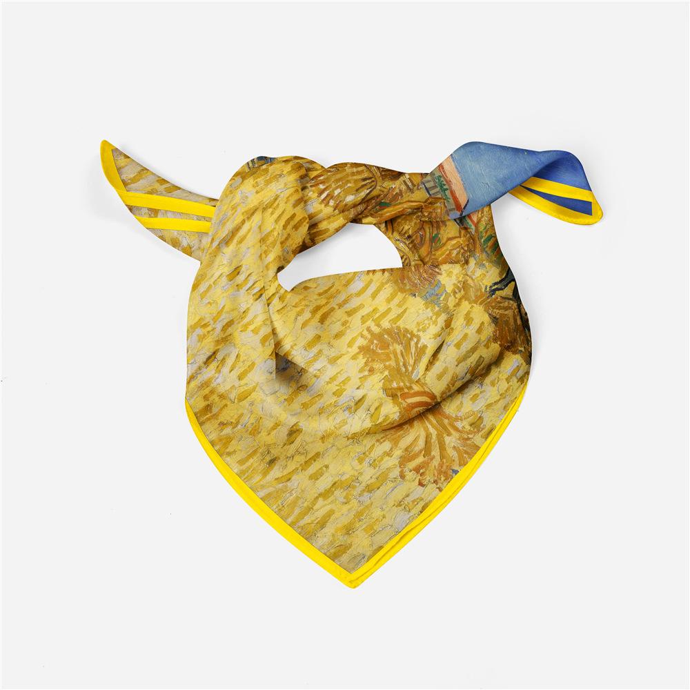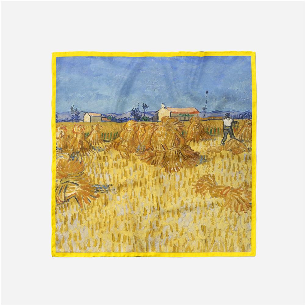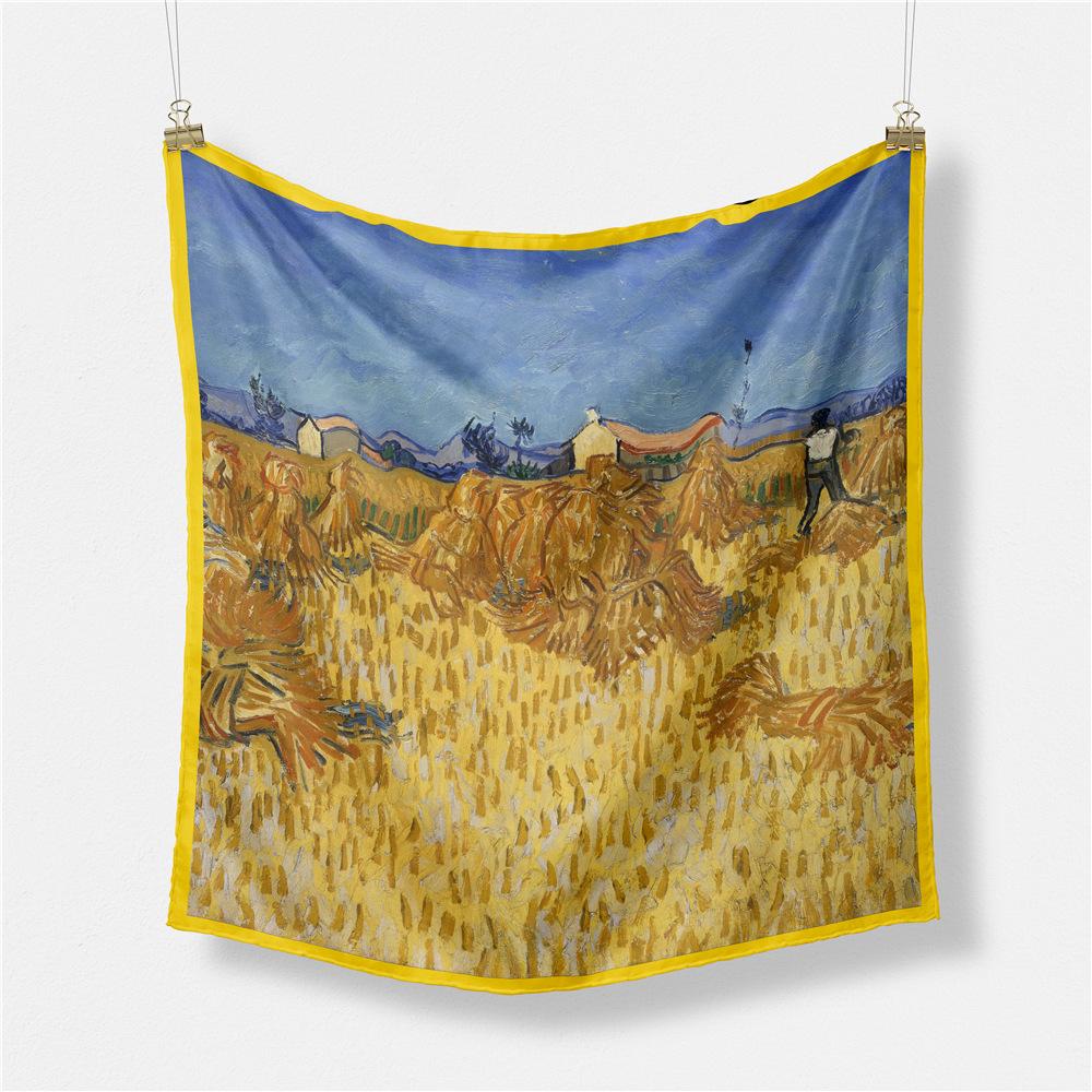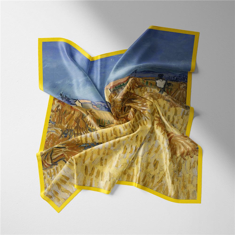 53см Картина «Уборка пшеницы» Квадратный платок Женский Новый шелковый платок Женский Бандана Роскошная повязка на голову Хиджаб Фуляр Шейный платок