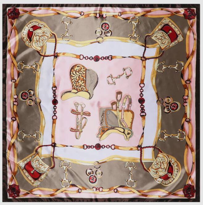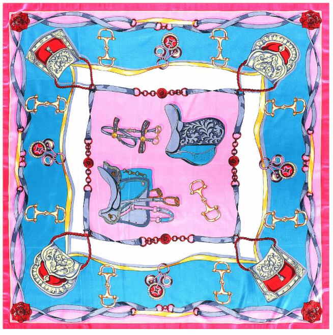 90*90см Роскошный бренд Женские шелковые платки Дизайн «Седло и цепь» Квадратные платки Весенне-летние шали для дам