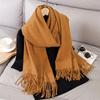 Модный Роскошный Однотонный Женский Зимний Шарф Теплый Утолщенный Кашемировый Платок Уличный С Кисточками Пашмина Женский Платок Ветрозащитные Шарфы