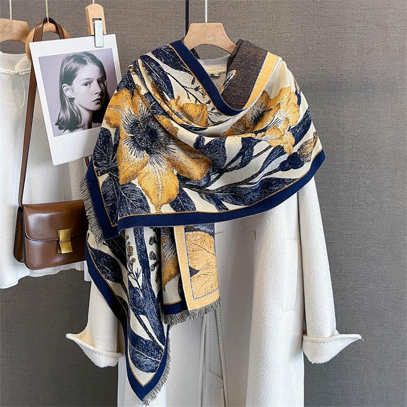 Роскошный зимний шарф с принтом для женщин Кашемировый теплый фуляр Женские шали Накидки Толстый Мягкий Пашмина Буфанда Шарфы Стола Плед