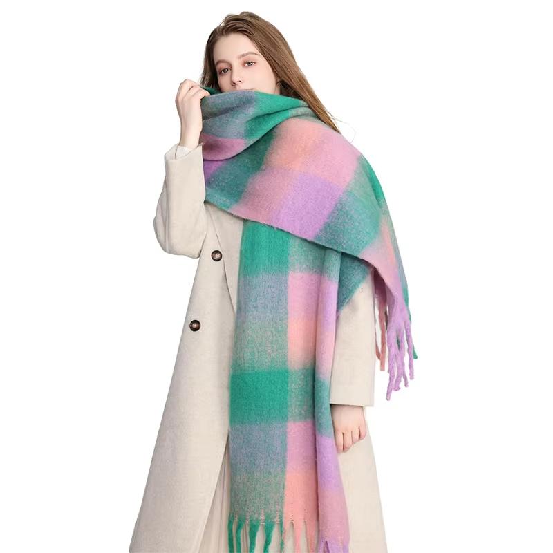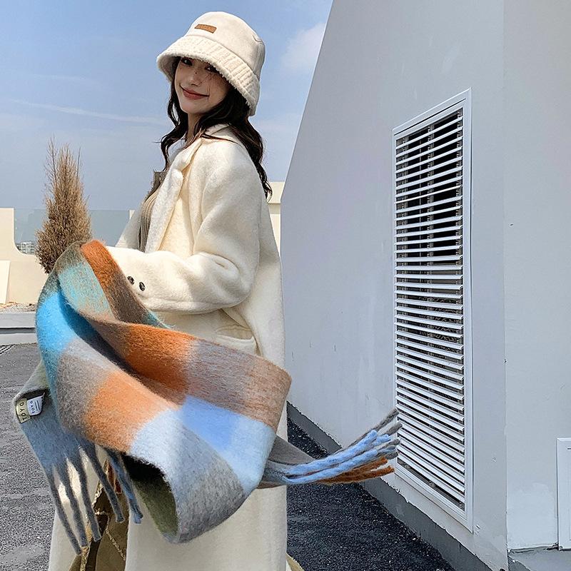 Winter Female Lattice Imitation Cashmere Scarf for Women Thick Warm Pashmina Bufanda Shawl Rainbow Tassel Echarpe Poncho Stoles