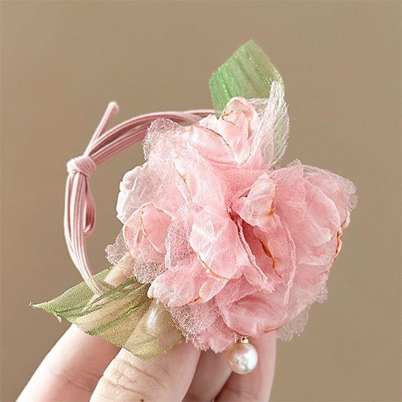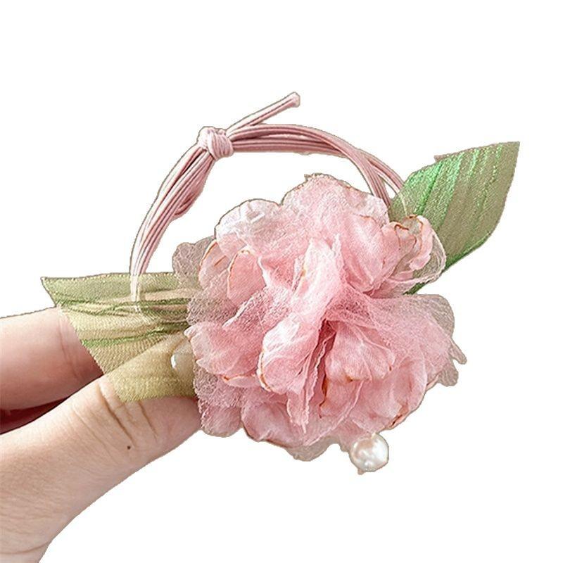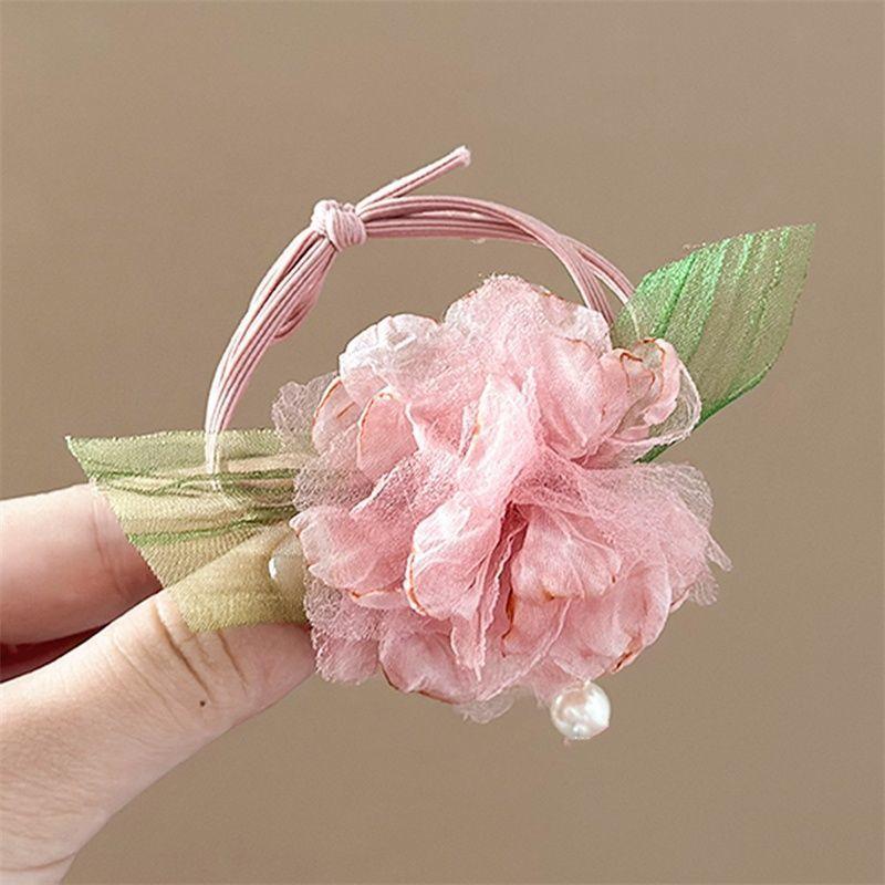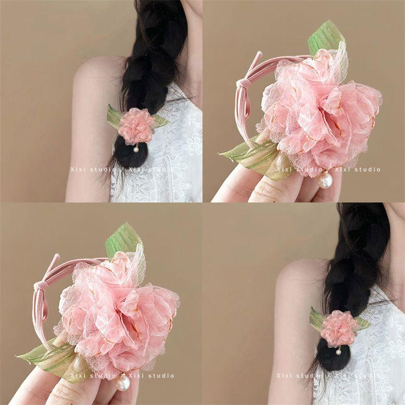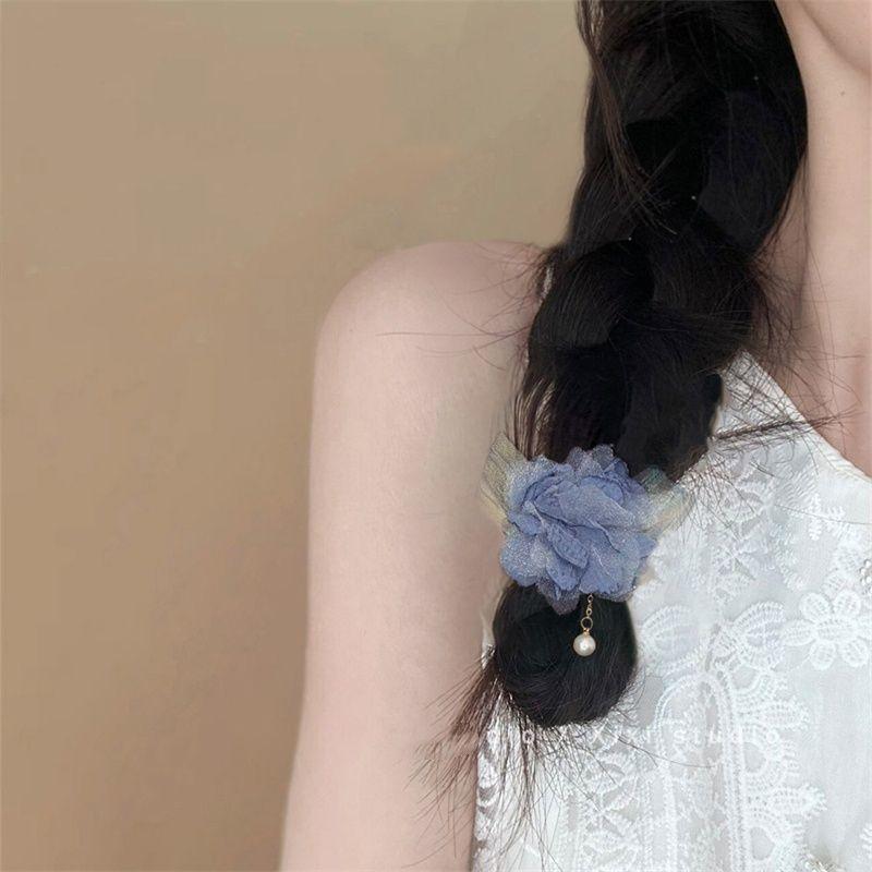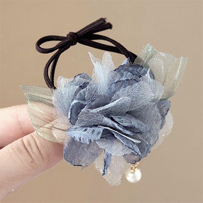 Розовая лента с цветком, резинка для волос, женская, для девочек, с бантом, держатели для хвостика, веревки для волос, аксессуары для волос в корейском стиле, головной убор, синий