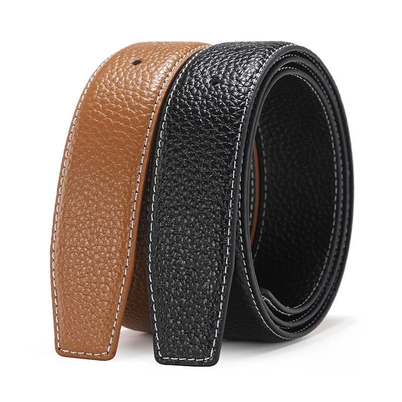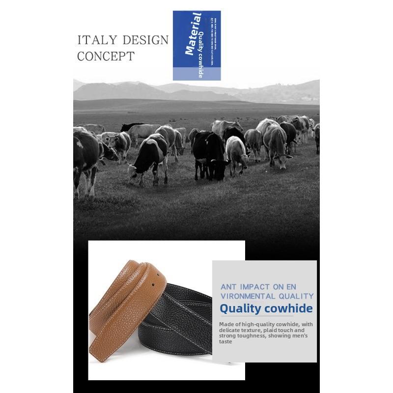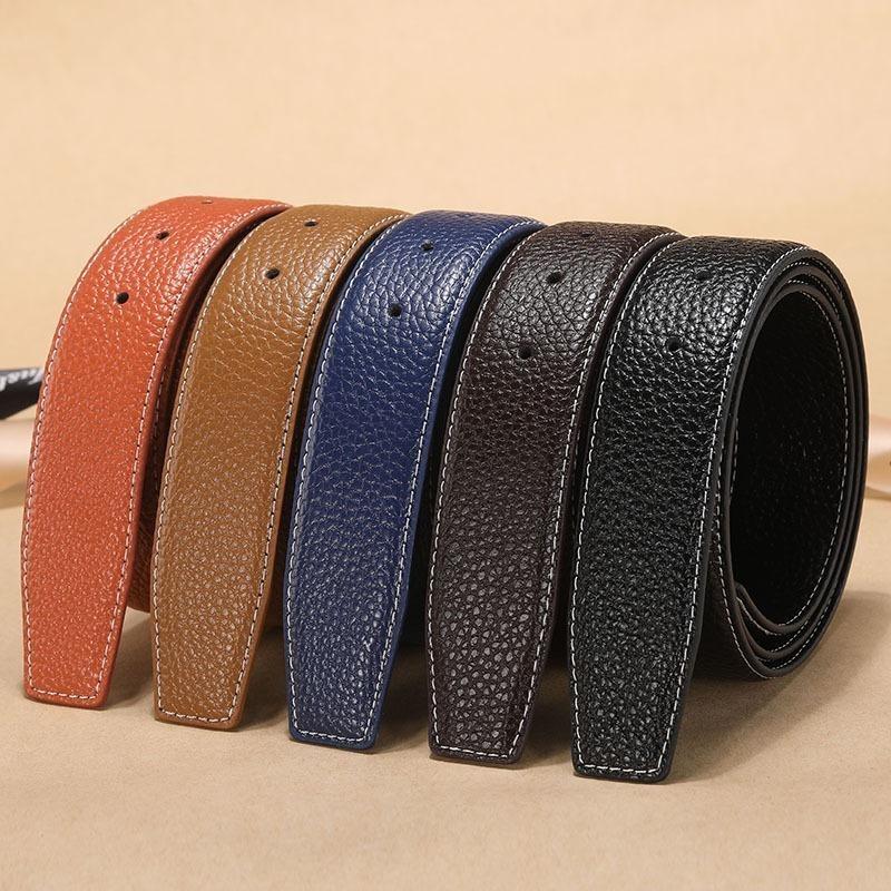 Безголовый ремень Мужской кожаный ремень с узором личи, Гладкая пряжка Пряжка Точка