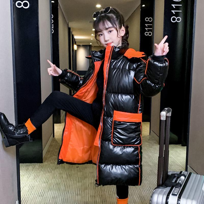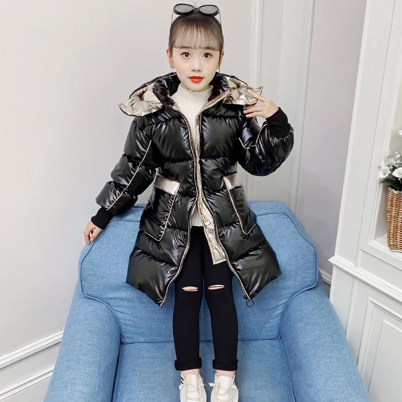 Зимние детские теплые длинные пальто для девочек, утепленные куртки с плюшевой подкладкой, подростковая водонепроницаемая парка с капюшоном, детская верхняя одежда