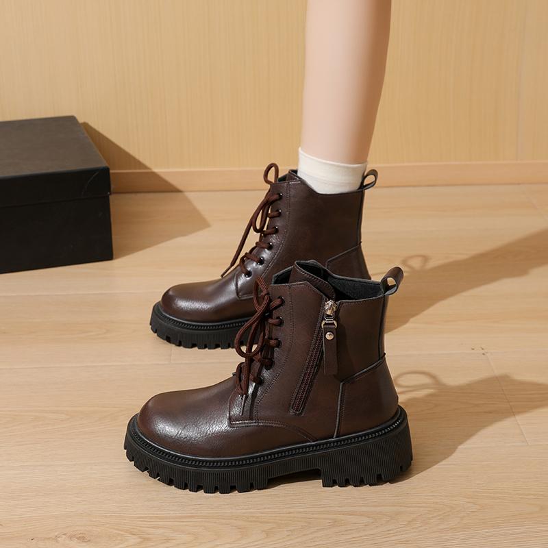 Женские зимние ботинки повседневные коричневые короткие мотоциклетные ботинки уличный стиль черные теплые ботильоны с мехом большого размера