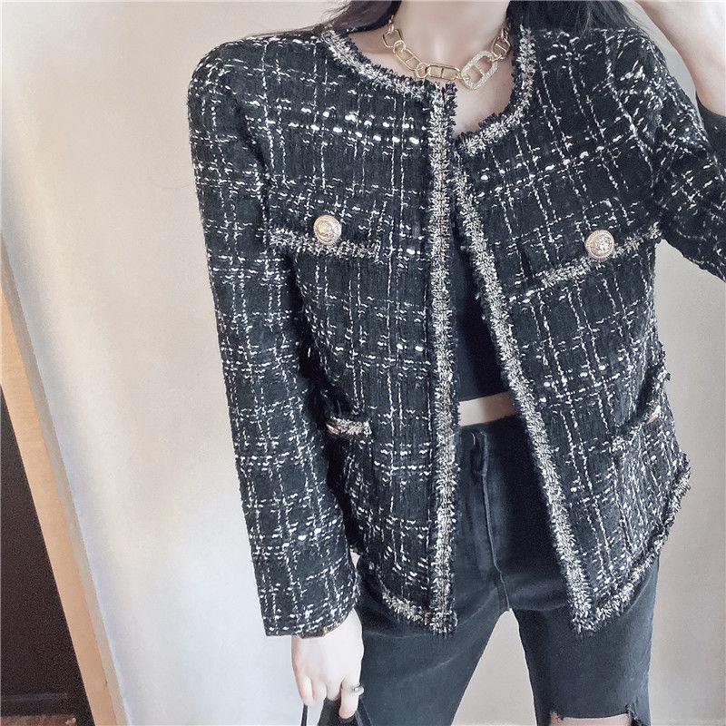 Женская осенняя винтажная повседневная твидовая куртка с небольшим ароматом, пальто