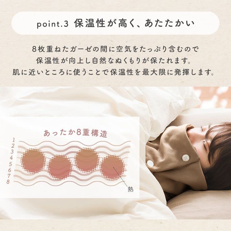 Шея с одним размером подходит Сделано Сделано из японской отбеленной ткани [cumuco] Теплее, 8-слойная марля, Пуговицы, Снуд, Шарф, Все, 100% хлопок, Япония,