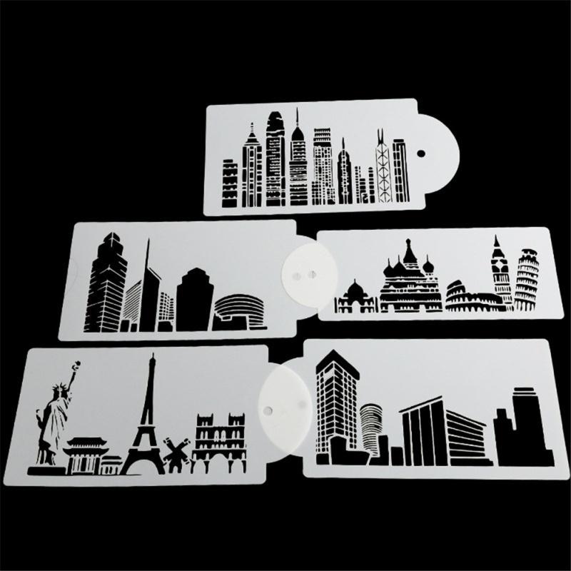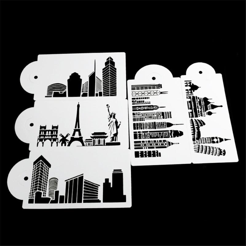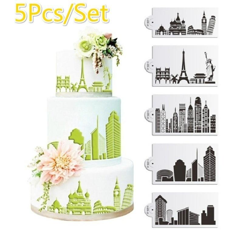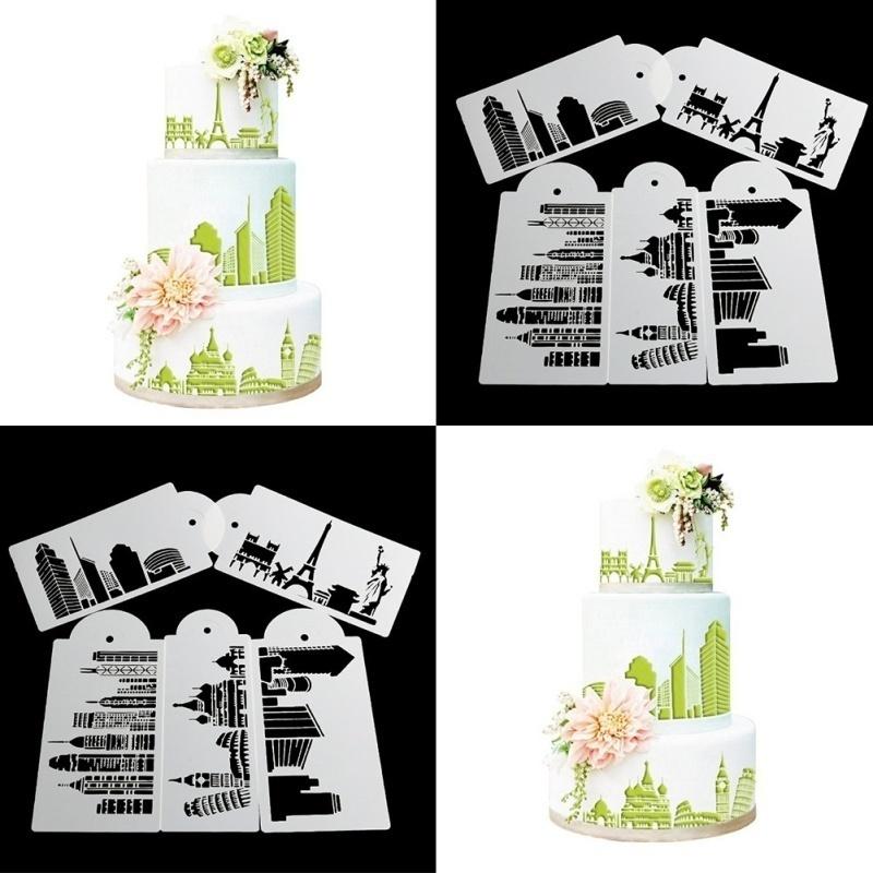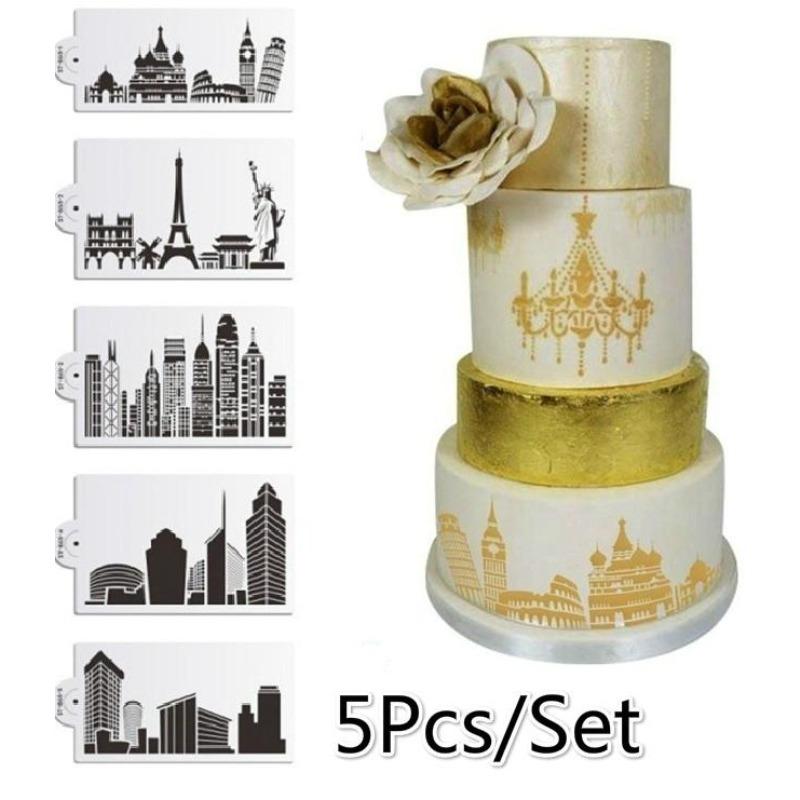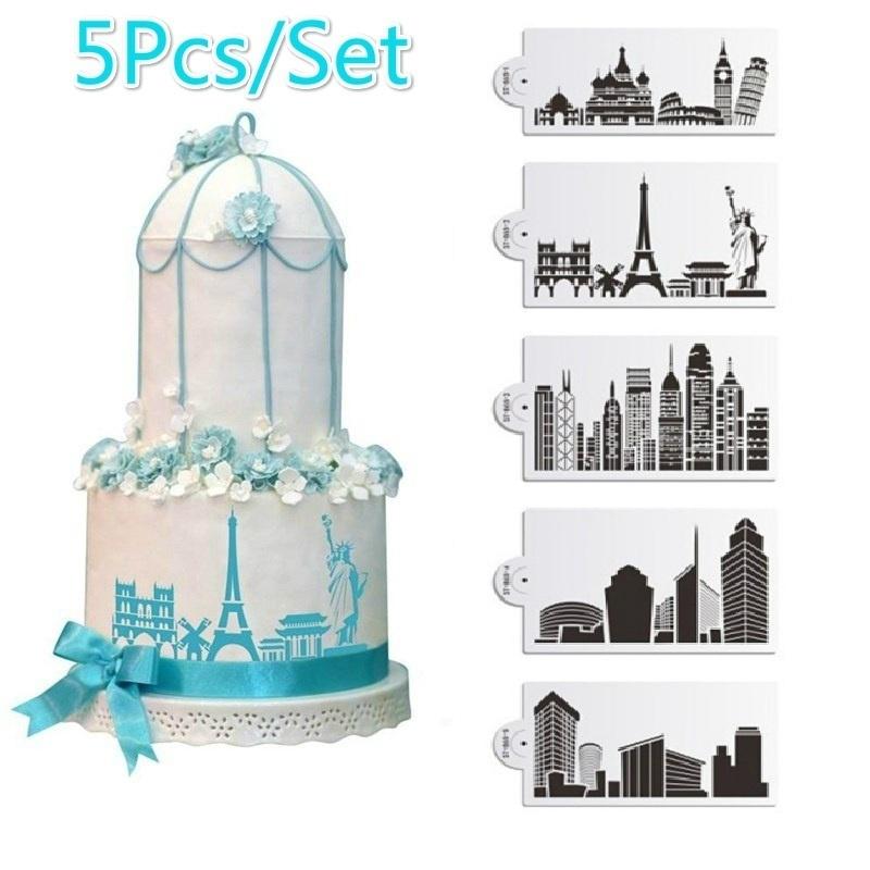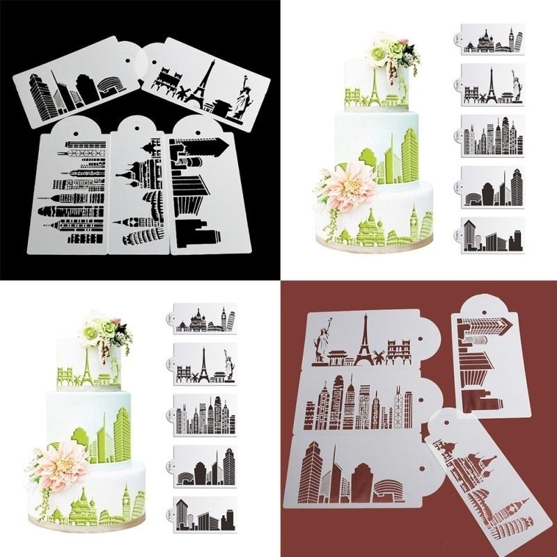 5 шт./набор Трафарет для торта Форма для выпечки Многоразовый Аэрограф Эйфелева башня Статуя Свободы Живопись Искусство Сделай сам