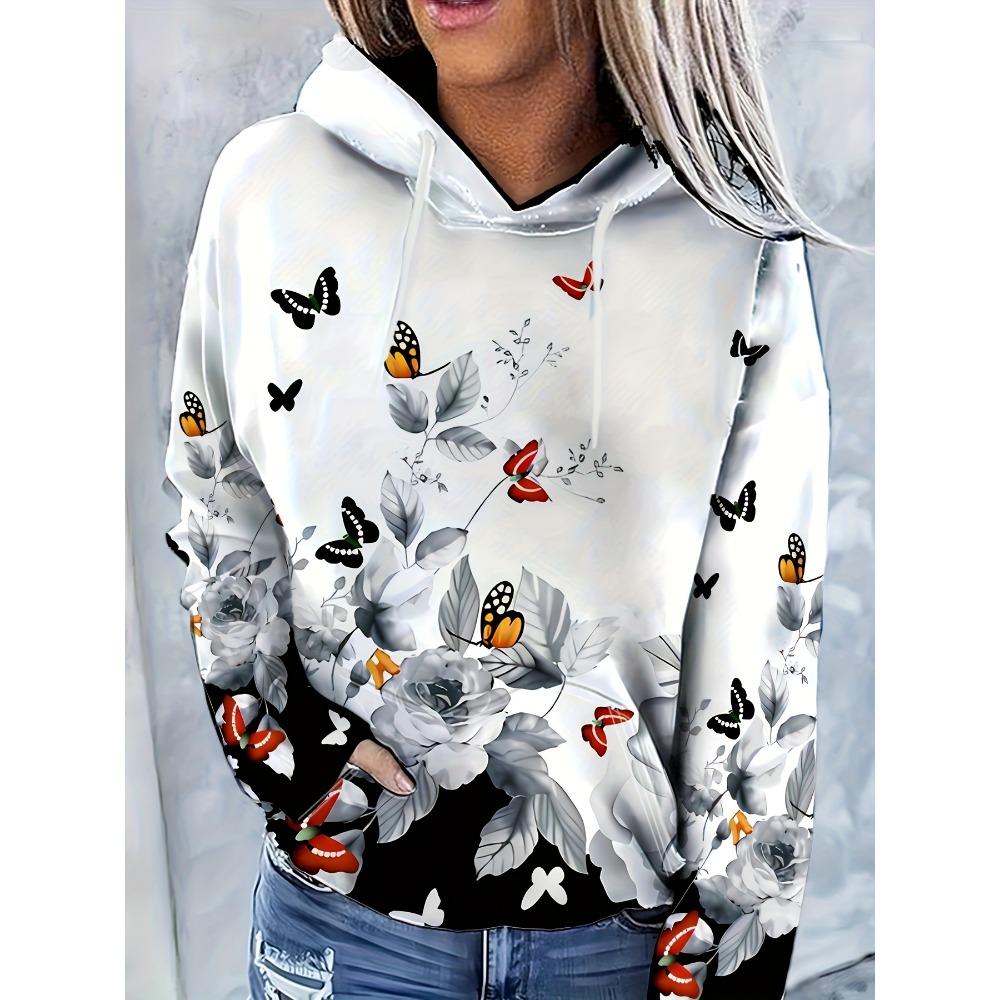 2025 Женские топы осень и зима толстовки женские свободные с цветочным принтом бабочки 3D-принт модные повседневные толстовки — купить товар онлайн с бесплатной доставкой по всему миру!