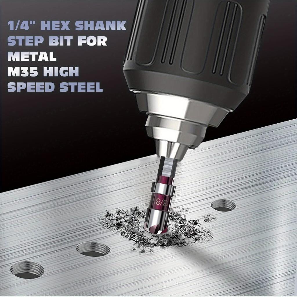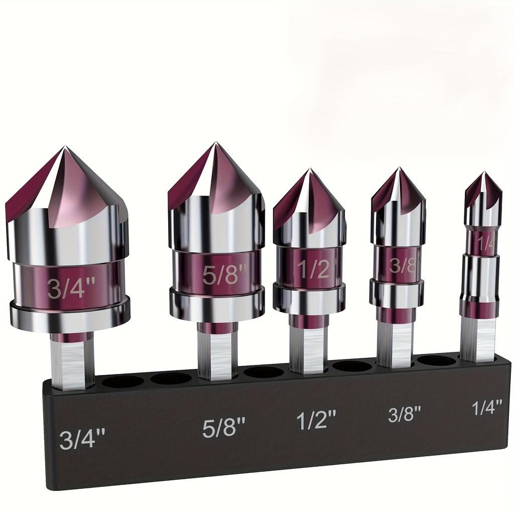 Набор из 5 зенковочных сверл из кобальтовой сплава M35 с углом заточки 82 градуса и шестигранным хвостовиком 1/4 дюйма — подходит для сверления металла, дерева и пластика.