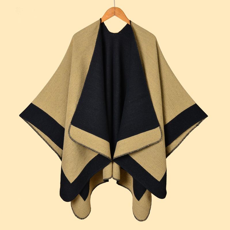Осенне-зимний женский теплый шарф-шаль простой двусторонний можно носить жаккардовый утолщенный теплый внешний плащ