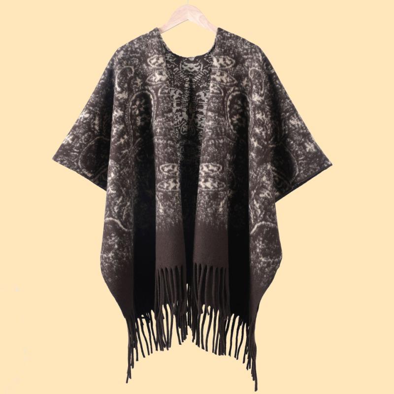 Женская двухсторонняя утолщенная накидка-шаль с принтом, ретро, с бахромой и разрезами, теплая накидка для путешествий на осень и зиму