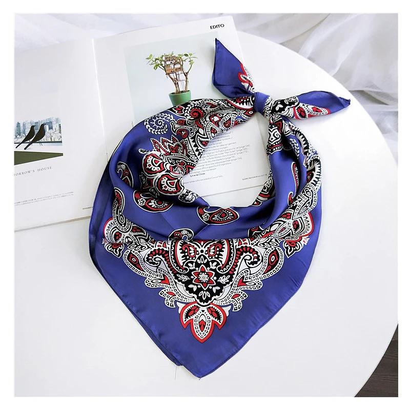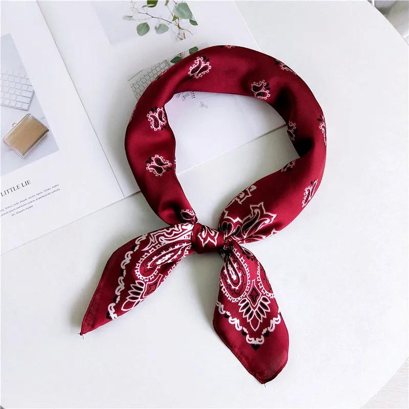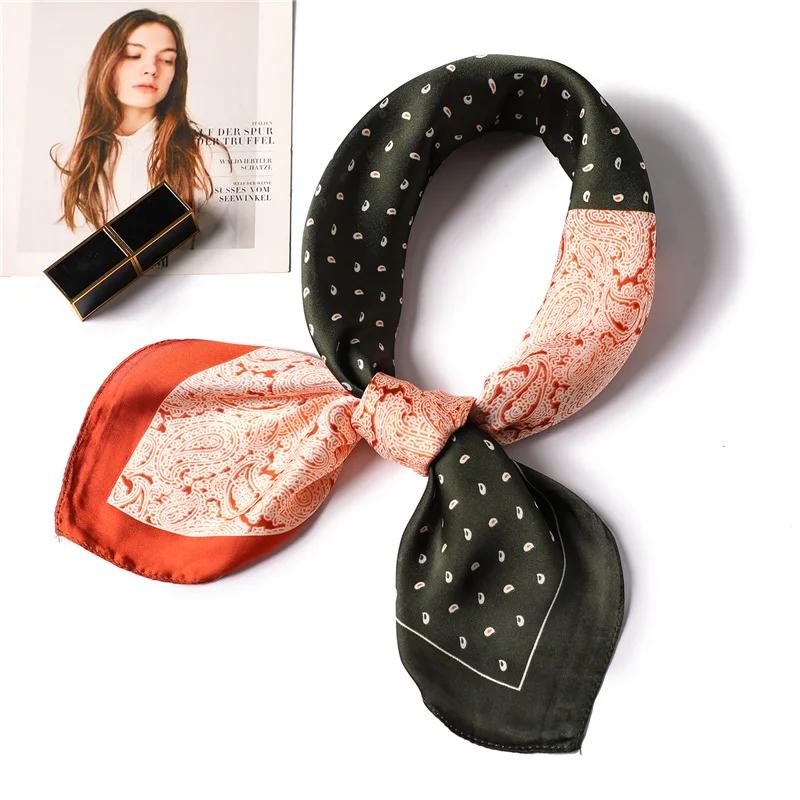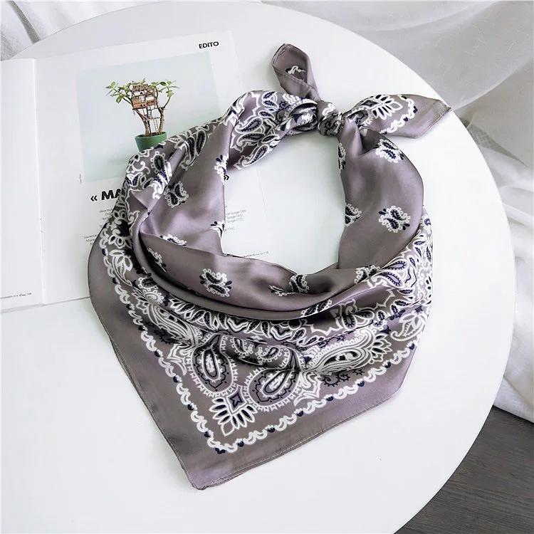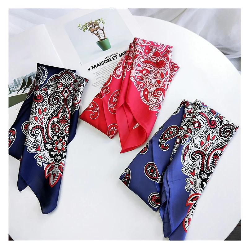 Модный бандана-платок для волос 70 см для женщин, пейсли-принт, косынка, шелковый сатин, головные платки, квадратная шаль, обертывания, шейные платки для леди
