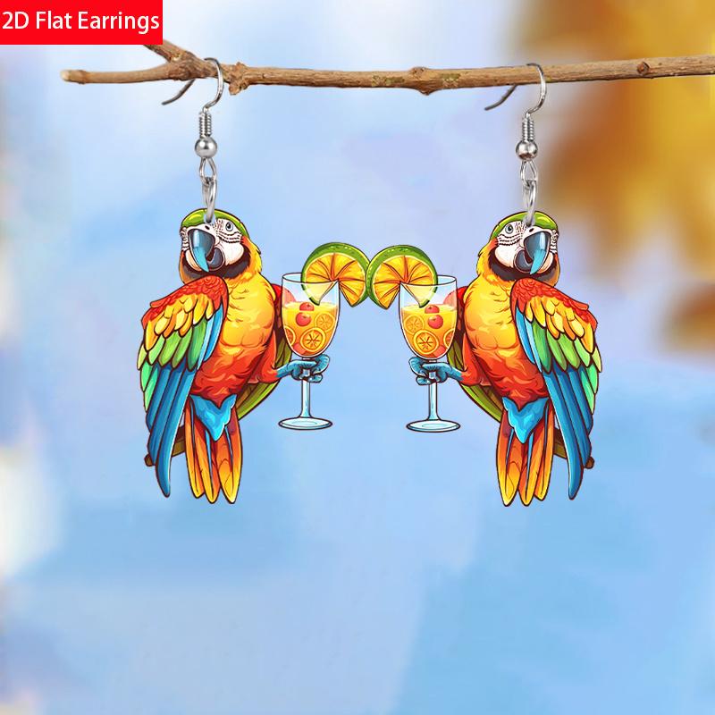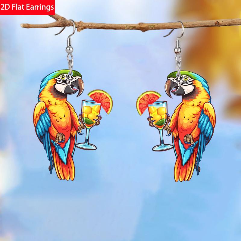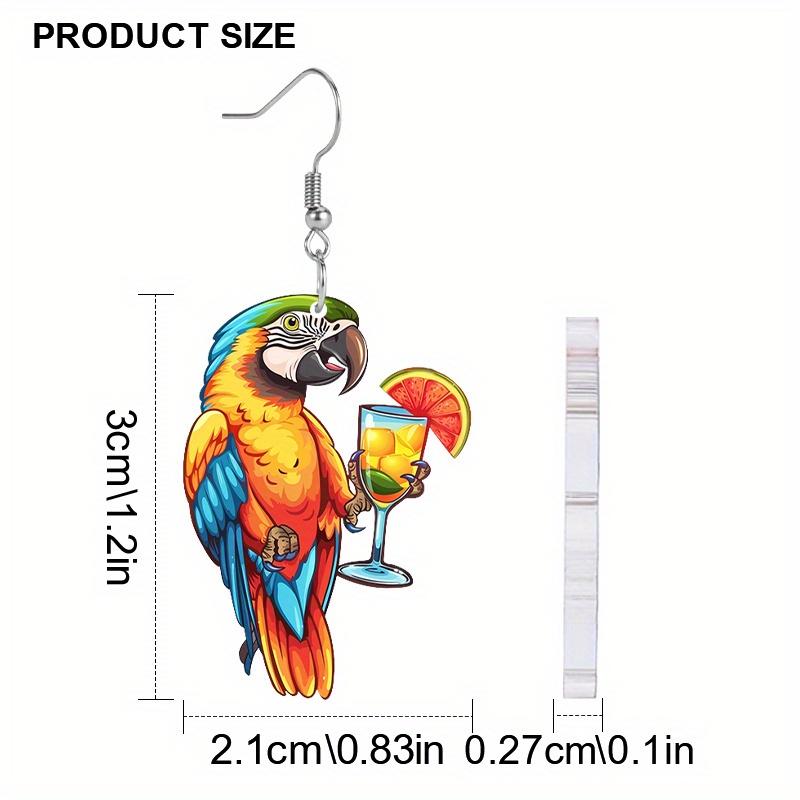 Милые акриловые серьги в виде попугая с лимонным напитком для женщин, шикарные модные серьги, серьги с животными, женские универсальные серьги, праздничные подарки для лучших подруг