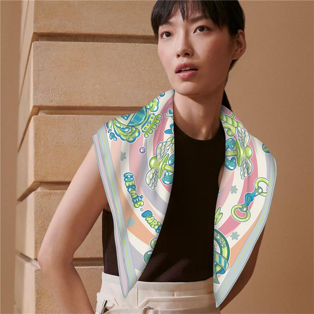 POBING Curled Twill Silk Scarf Women Book Chapter Double Side Printed Square Scarves Wraps Echarpes Foulards Femme Hijab 70CM