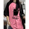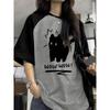 Забавная женская летняя футболка с принтом кота, пэчворк, с коротким рукавом, футболки в стиле харадзюку, спортивная футбольная майка, Y2K, свободные топы оверсайз