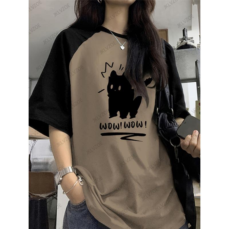 Забавная женская летняя футболка с принтом кота, пэчворк, с коротким рукавом, футболки в стиле харадзюку, спортивная футбольная майка, Y2K, свободные топы оверсайз — купить товар онлайн с бесплатной доставкой по всему миру!