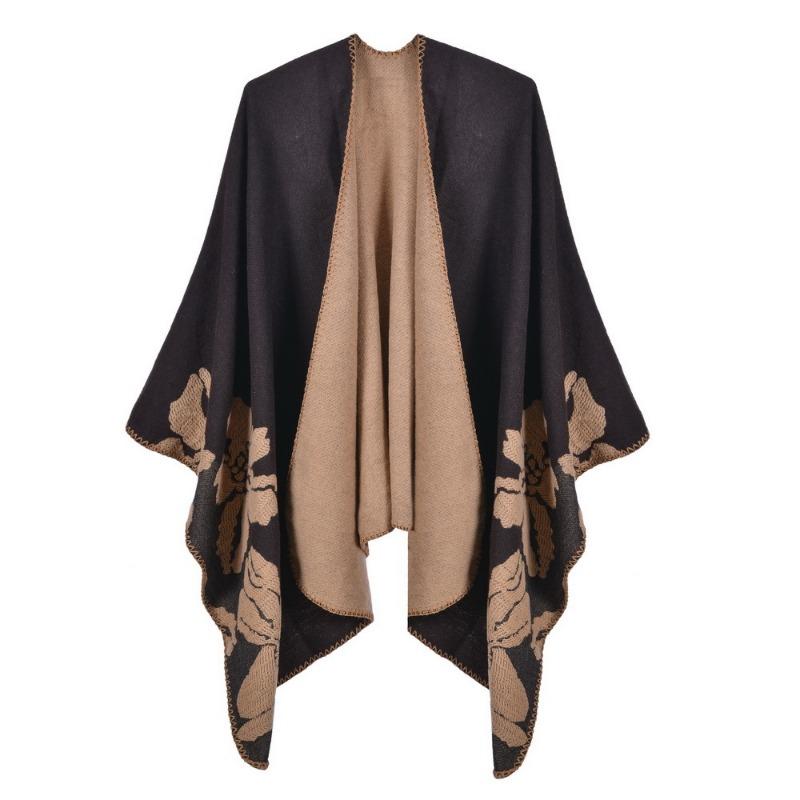 Новая модная утолщенная большая шаль женская ретро с большим цветком двусторонняя имитация кашемира многофункциональная накидка