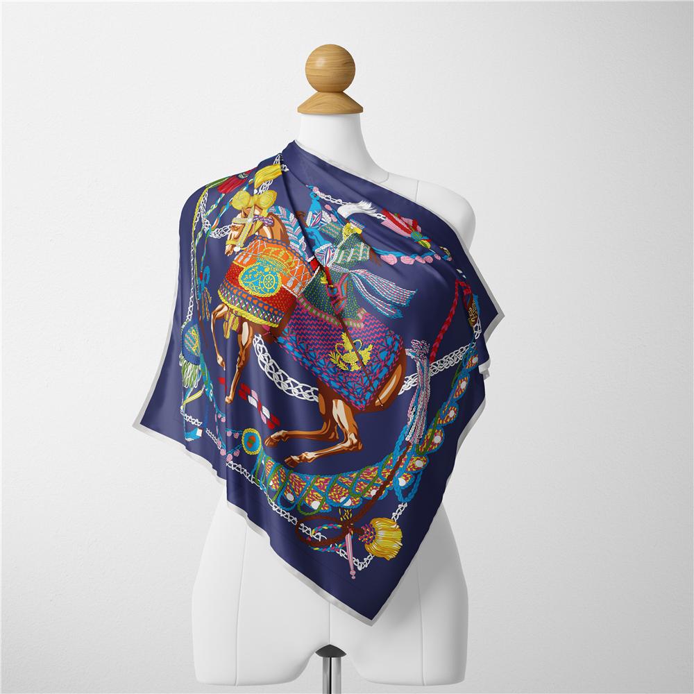Твиловый шелковый шарф женский с кисточками, квадратный шарф с принтом лошади, платок-бандана, маленький хиджаб, шелковые фуляры, женский галстук, повязка на голову, шейный платок