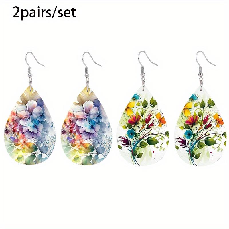 Красочные Серьги из ПУ кожи с узорами из цветов, веток и листьев для женщин, элегантные и очаровательные, ювелирные украшения, подходящие для фестивалей, банкетов