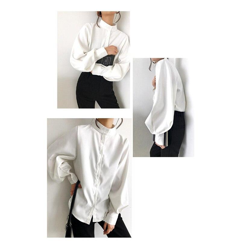 Винтажные белые рубашки с воротником-стойкой и рукавом-фонариком, женские осенне-зимние утепленные блузки, женские топы