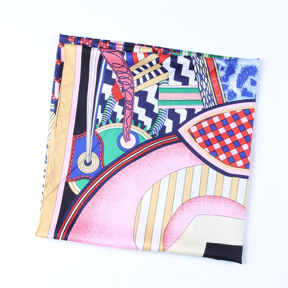 Manual Rolled Twill Silk Scarf Women Saddle Print Square Scarves Wraps Echarpes Curled Foulards Femme Bandana Silk Hijabs 90CM