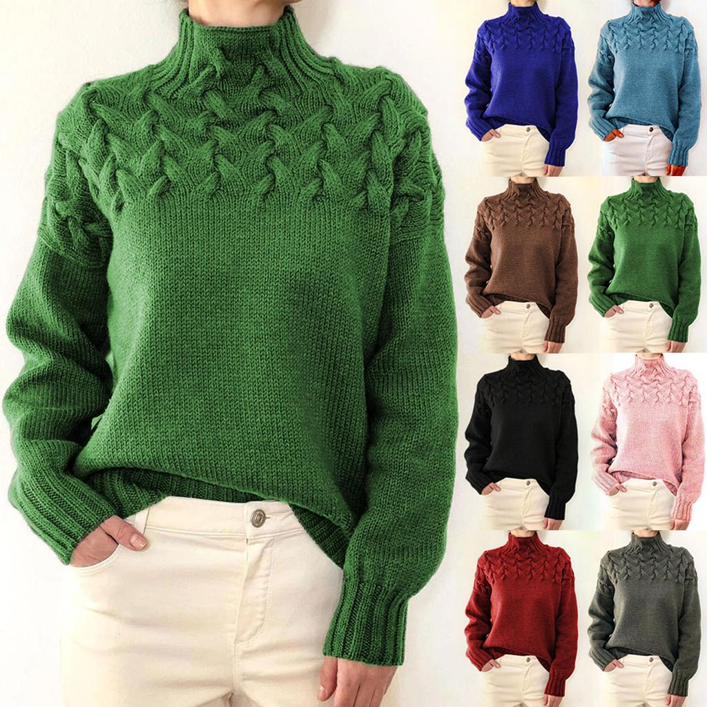 Женский свитер, водолазка, повседневный однотонный свободный пуловер с длинным рукавом и V-образным вырезом, массивный вязаный пуловер, топы