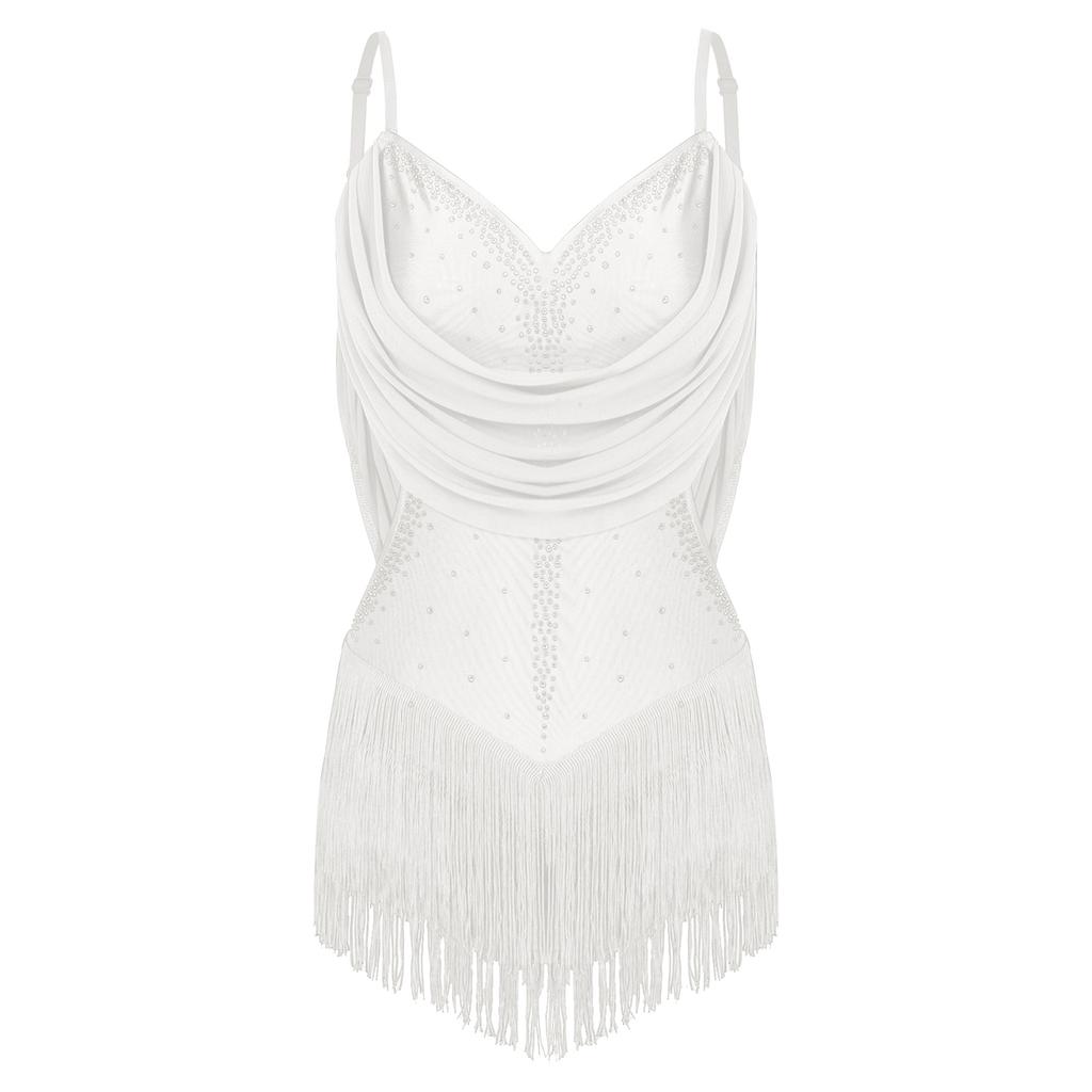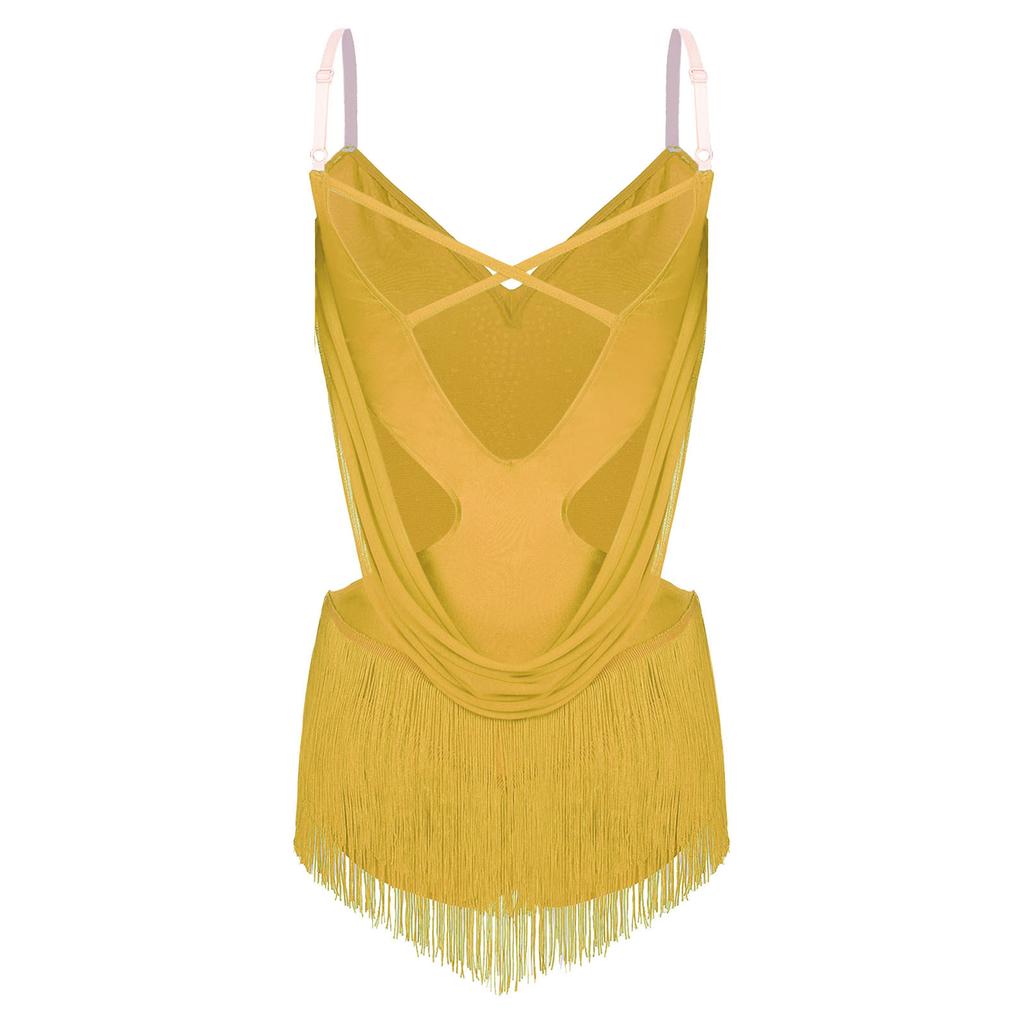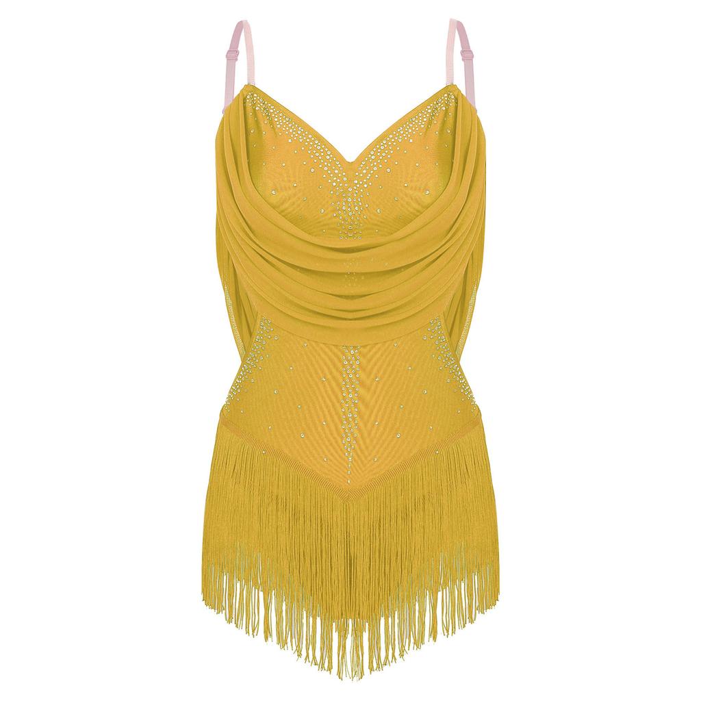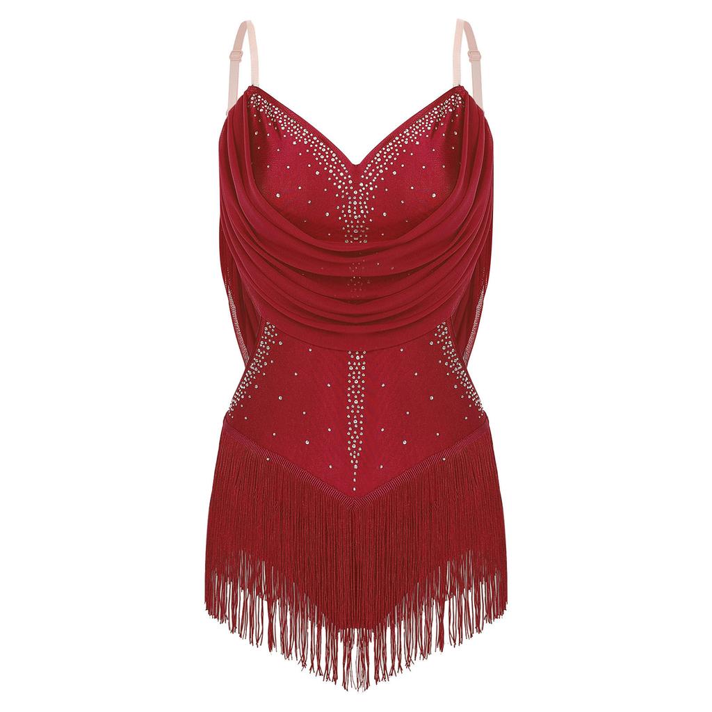 Женский купальник для танцев с драпировкой из сетки, кисточками, блестящими стразами, регулируемыми бретелями и вырезом с бахромой