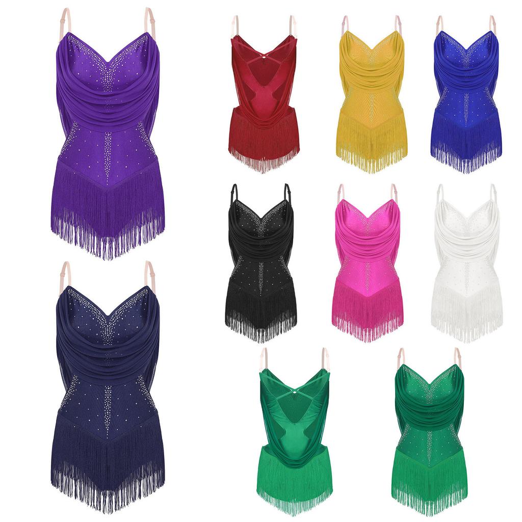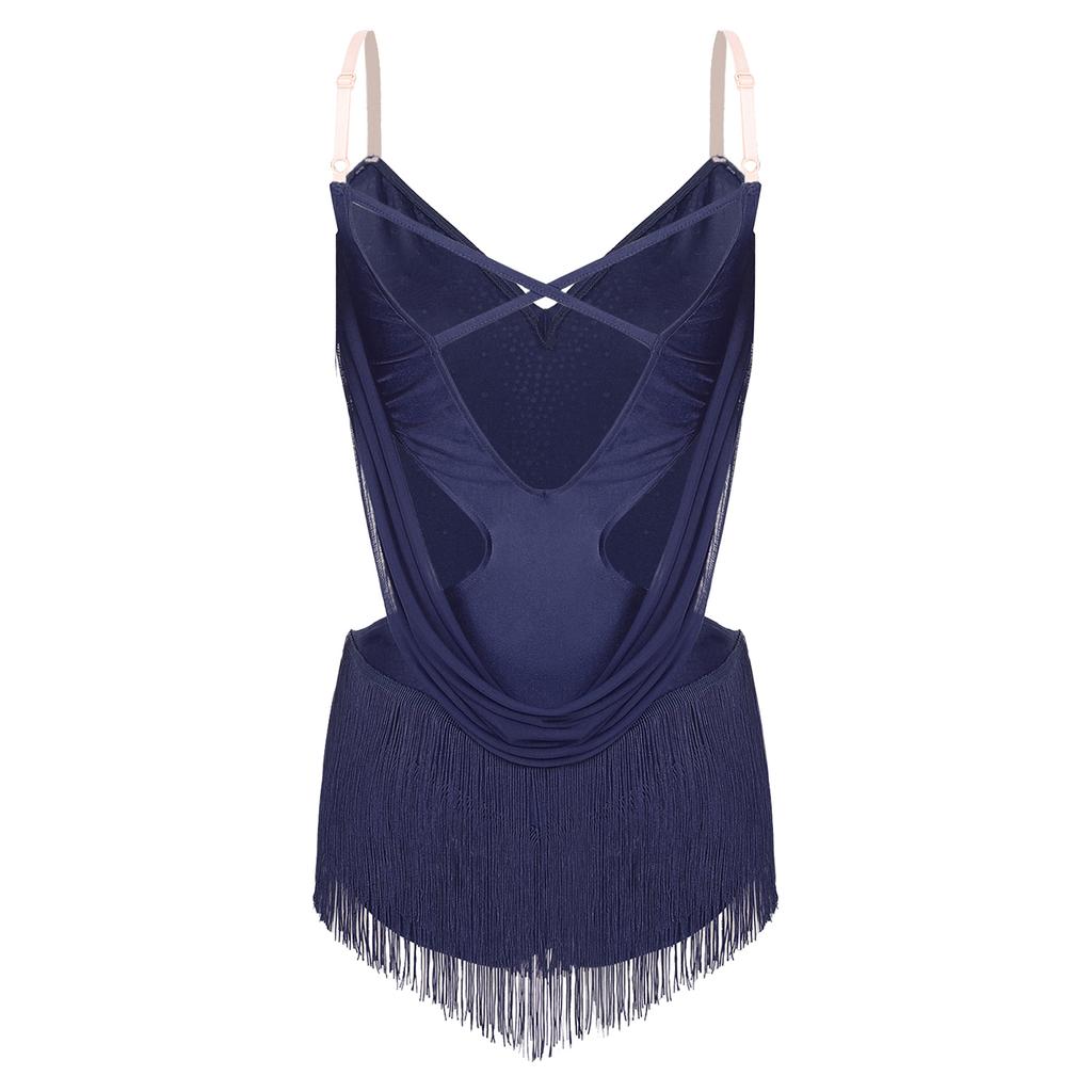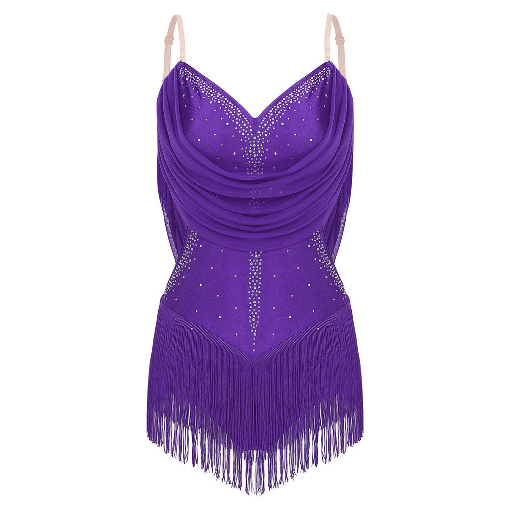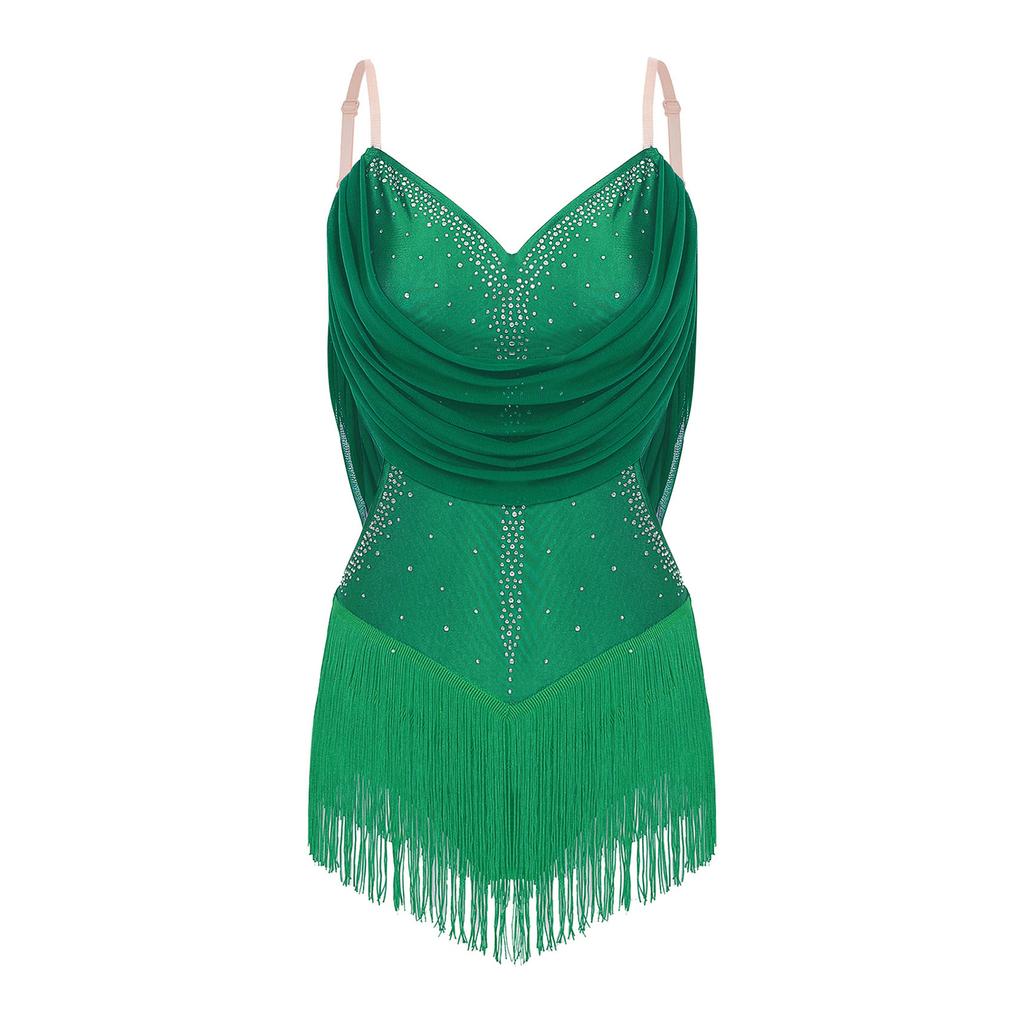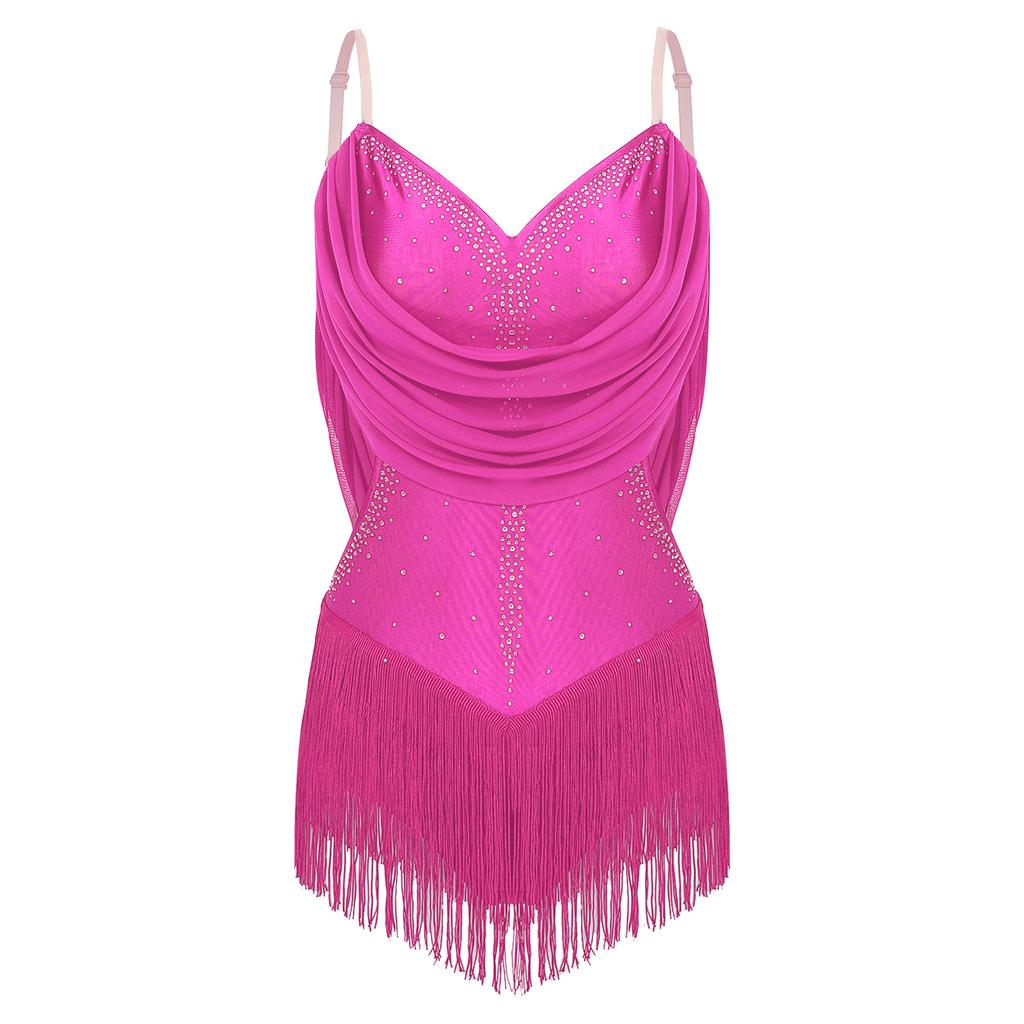 Женский купальник для танцев с драпировкой из сетки, кисточками, блестящими стразами, регулируемыми бретелями и вырезом с бахромой