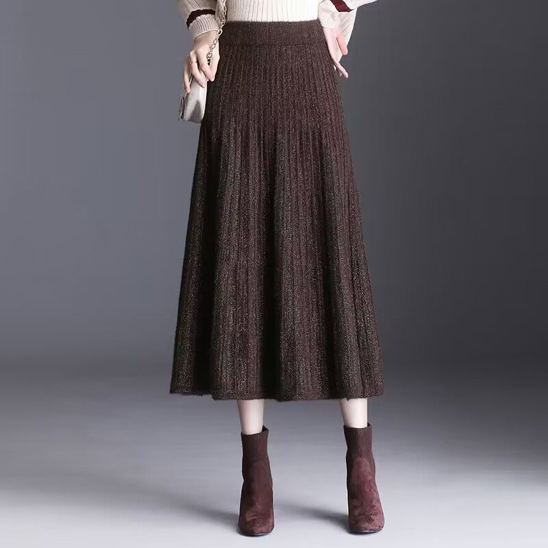 Зимняя норковая вязаная юбка женская длинная А-силуэта юбка-свитер толстая и теплая — купить товар онлайн с бесплатной доставкой по всему миру!