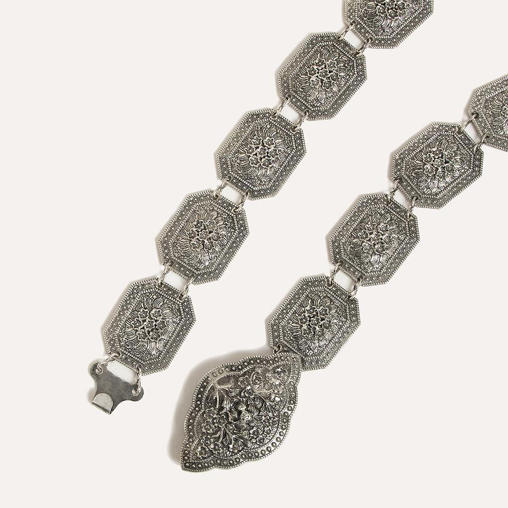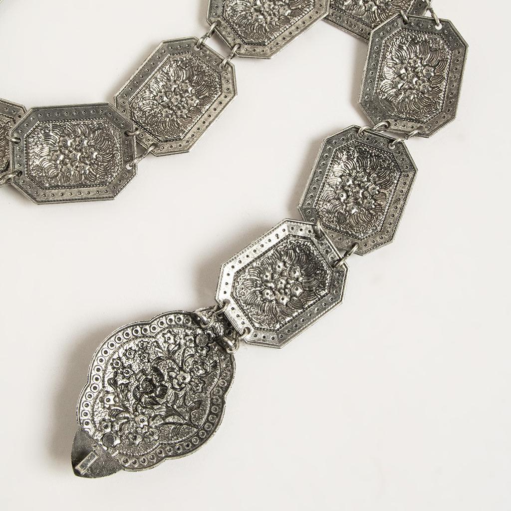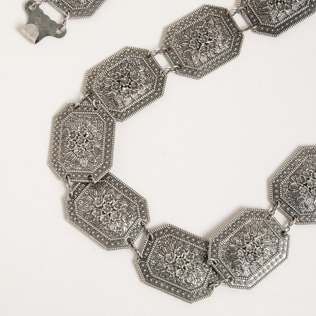 Новый Ретро Женский Геометрический Тяжелой Промышленности Гравировка Этнический Стиль Цветы Модная Металлическая Поясная Цепь