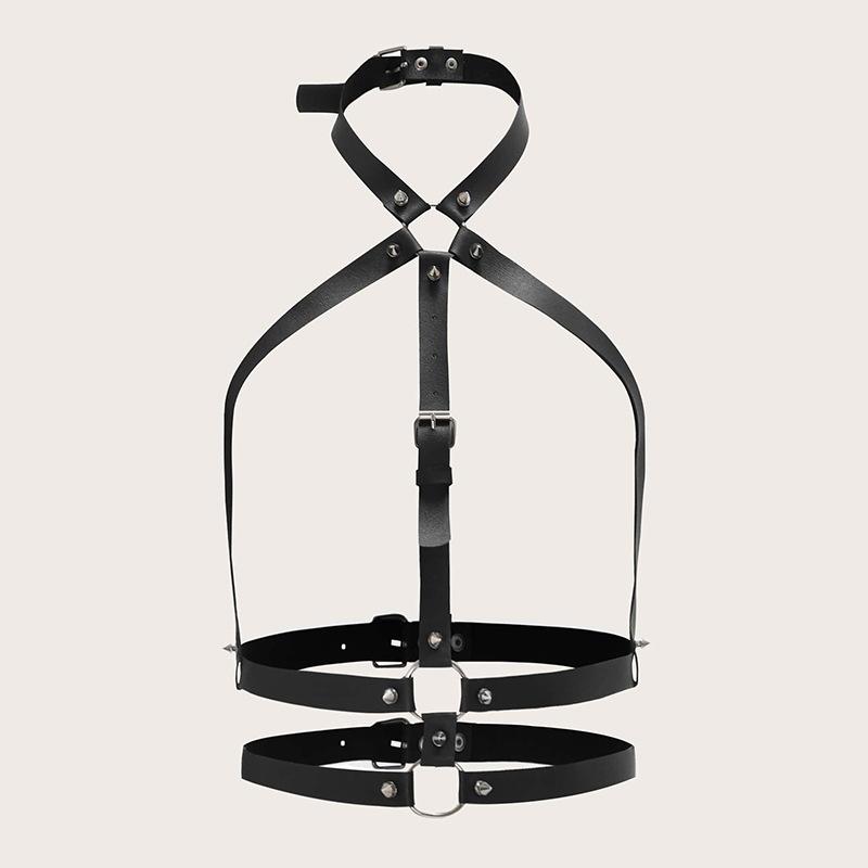 Женские панк-стиль заклепки бандажная отделка темные брюки кожа кожа сексуальный ремешок