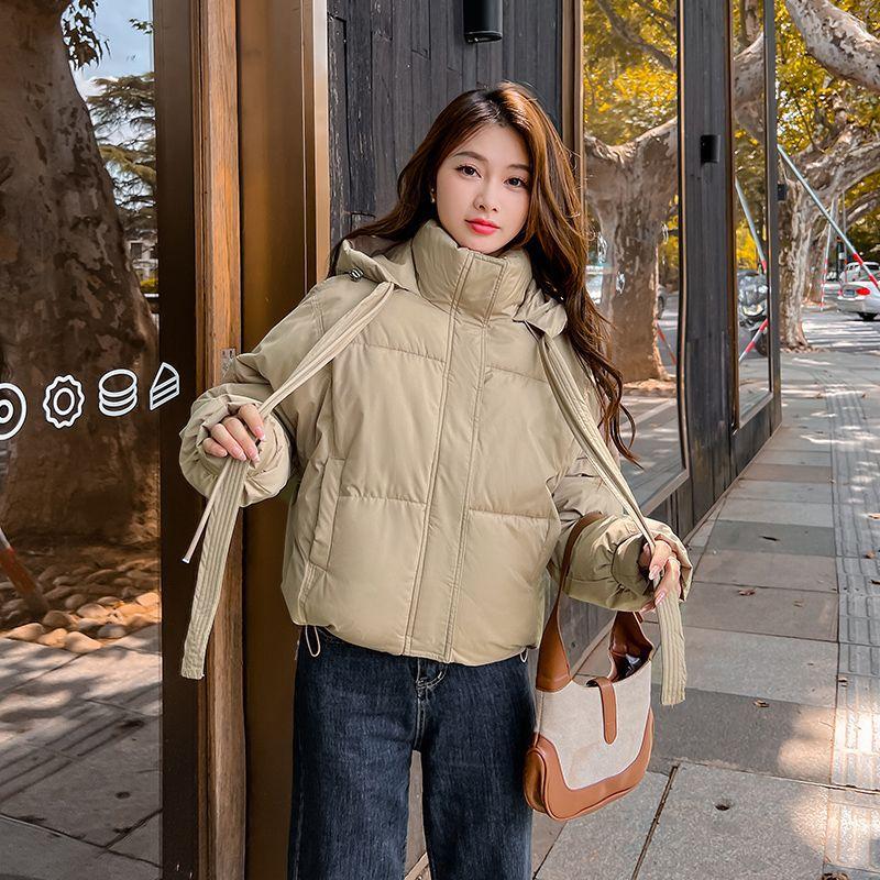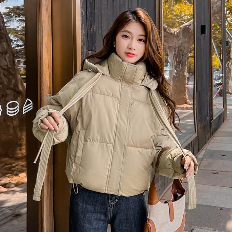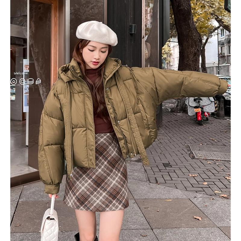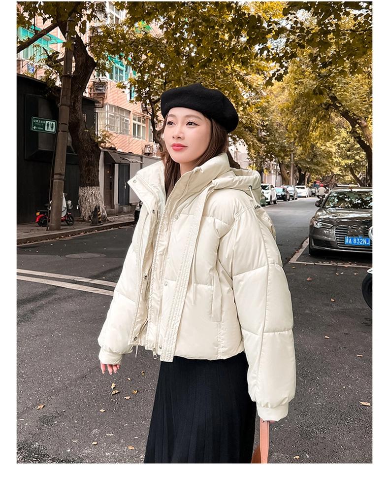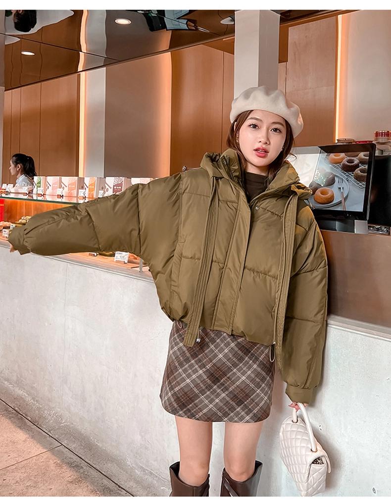 Женская короткая ветрозащитная теплая зимняя куртка с капюшоном и рукавами реглан