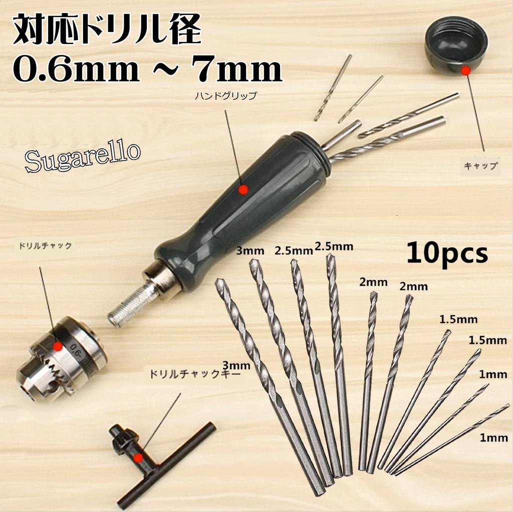Ручной ручной дрель Sugarello Компактное отверстие Микро пилотное отверстие Ремесло Акрил Включает 10 сверл Сверло, Сверло, Тиски, Сверло, Сверло, Сверло, Сверло, Инструмент,