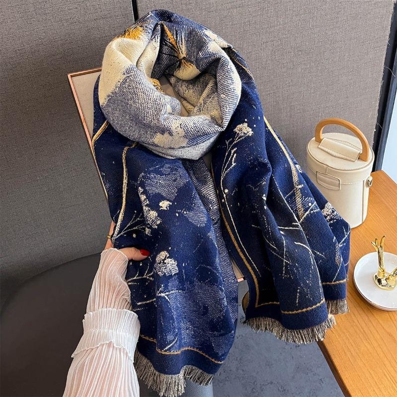 Кашемировый на ощупь осенне-зимний новый шарф с принтом одуванчиков, атмосферный женский шарф из имитации кашемира, утолщенный теплый шарф, тренд