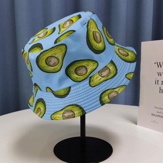 Панама рыбака с принтом авокадо, двусторонняя, с плоским верхом, дышащая, защита от УФ-лучей, солнцезащитная, декоративная, освежающий фруктовый узор, панама-ведро, головной убор