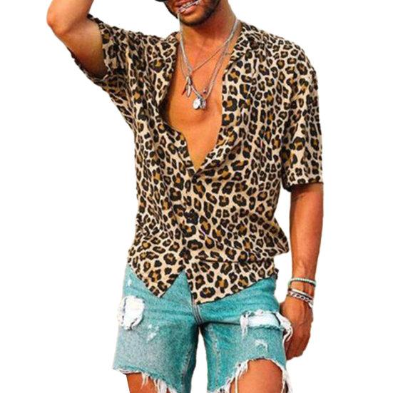 Испытайте идеальное сочетание стиля и комфорта с нашей мужской рубашкой с короткими рукавами в пляжном стиле с леопардовым принтом. Эта рубашка украшена сексуальным и стильным леопардовым принтом, который легко подчеркнет ваш повседневный стиль..