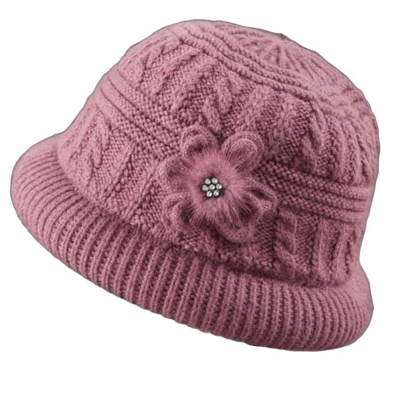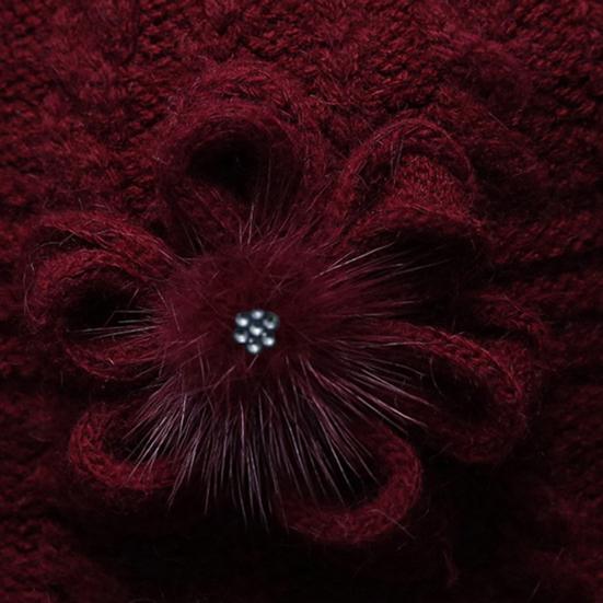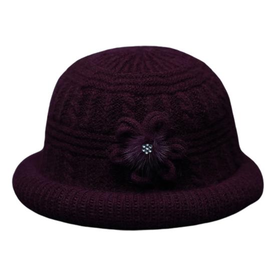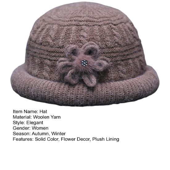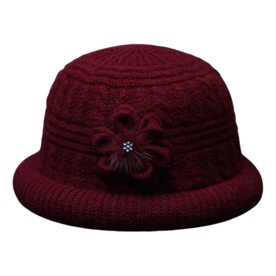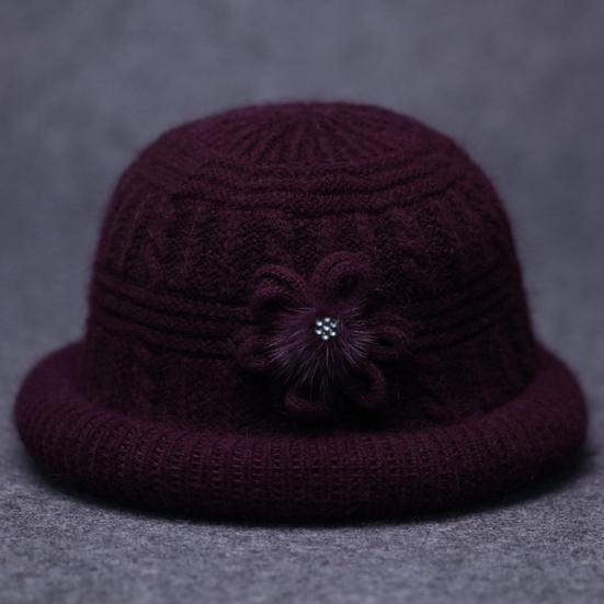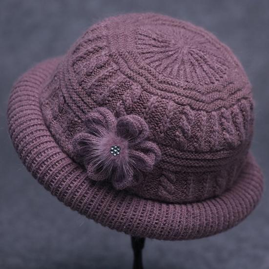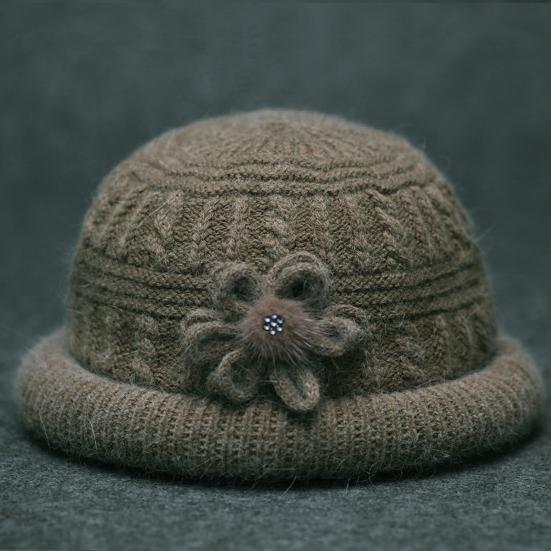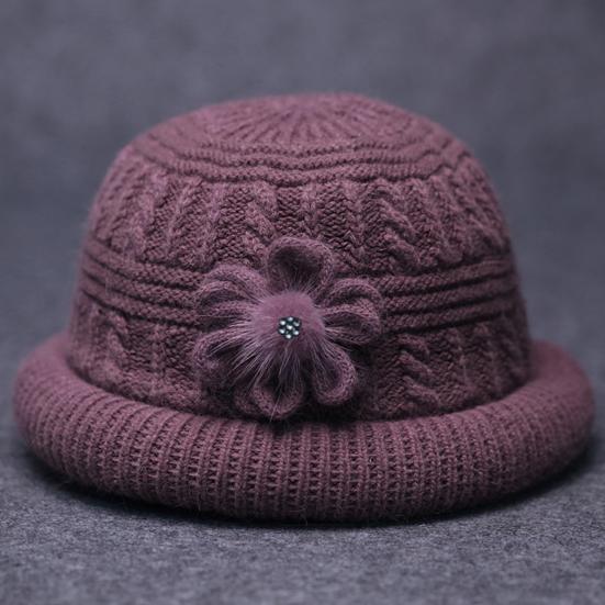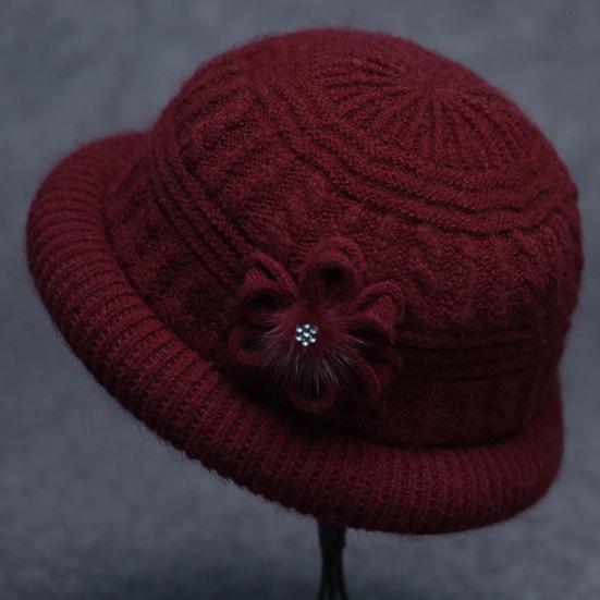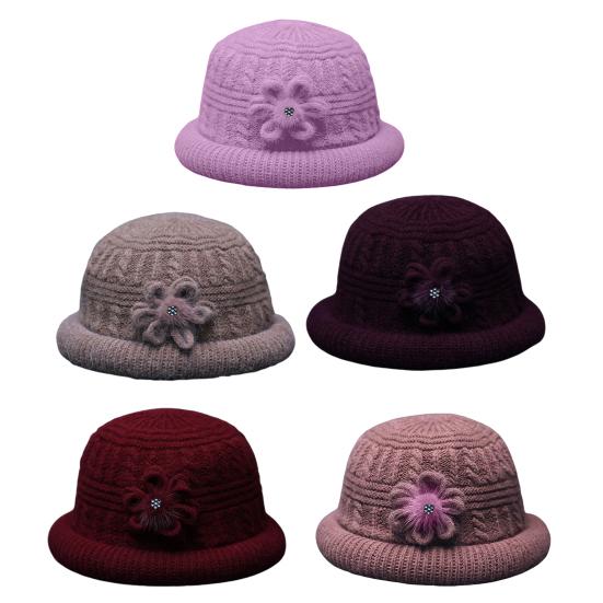 Круглый купол Искусственный кроличий мех Плюшевая подкладка Ветрозащитная Однотонная Вязаная шапка Пожилые люди Осень Элегантный Цветочный декор Шляпа-ведро Модные аксессуары