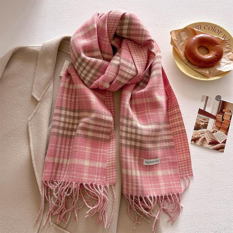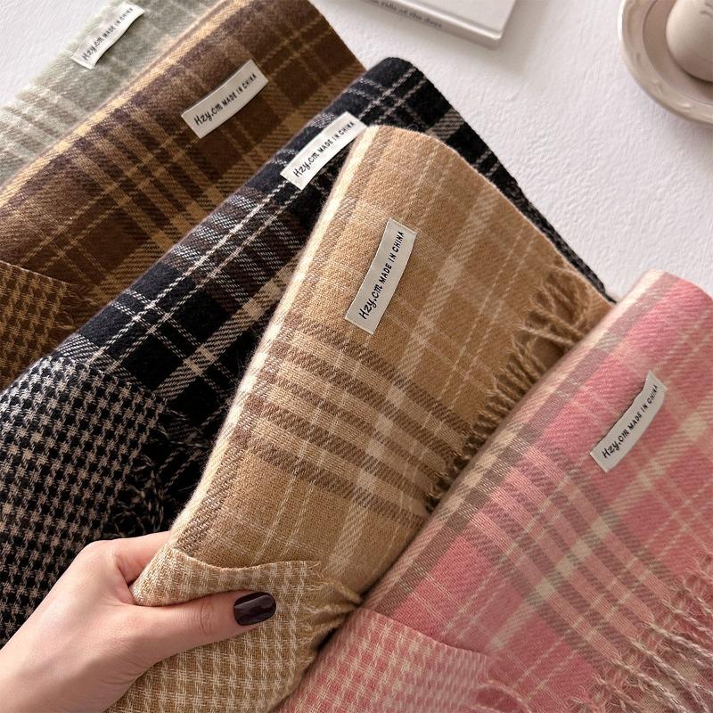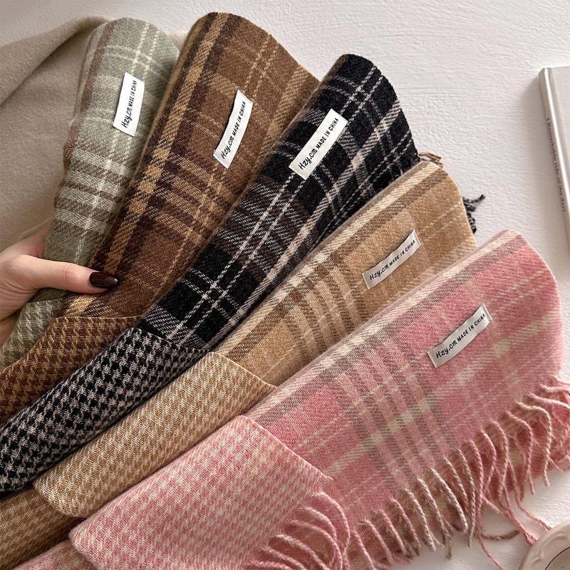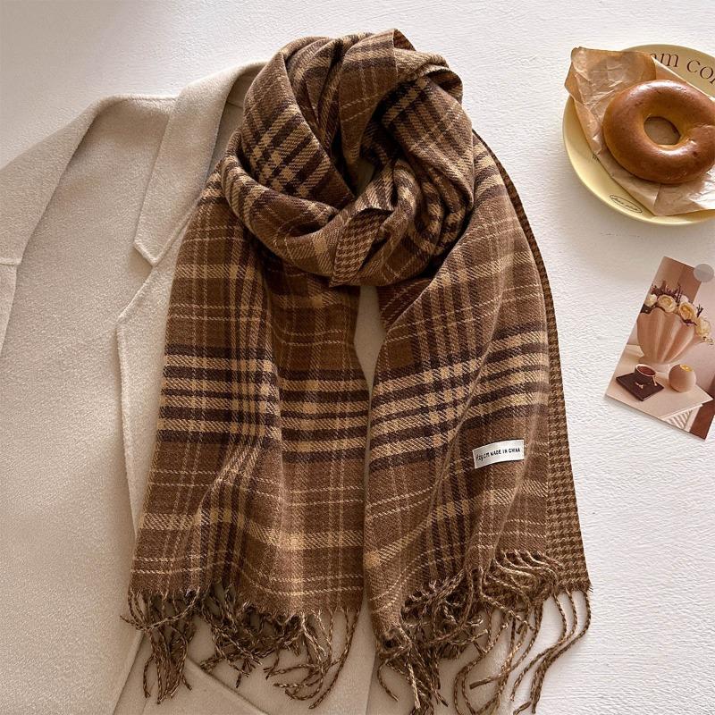 Новый ретро клетчатый шарф женский осенне-зимний средней длины теплый шарф модная универсальная шаль с бахромой