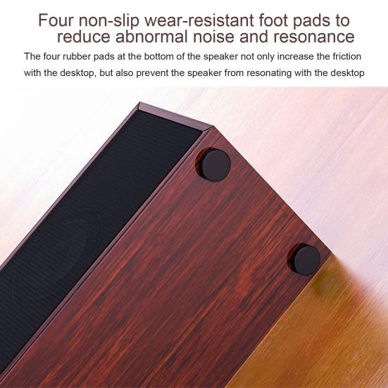 There are four rubber pads at the bottom, which can not only increase the friction, but also reduce the resonance between the sound and the desktop to improve the sound quality.