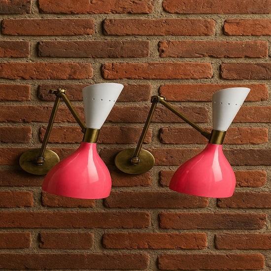 Настенный светильник Диаболо середины века Набор из 2 штук Латунь Розовый Итальянский светильник