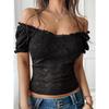 Летний кроп-топ с кружевом, однотонный, с вырезом лодочкой, женский, с коротким рукавом, универсальный, сексуальный, с открытыми плечами, с вырезами
