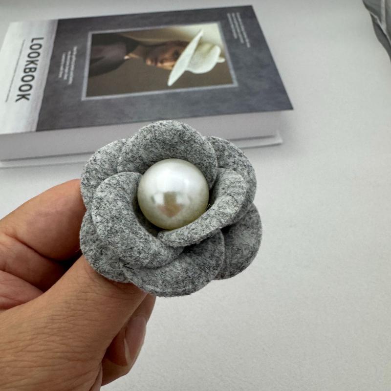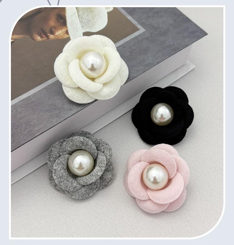 Большие броши-цветы с жемчугом, однотонные броши-цветы камелии из фетра для женской одежды и украшения сумок