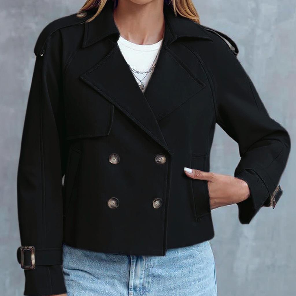 Женская модная повседневная куртка-ветровка с карманами и двубортной застежкой