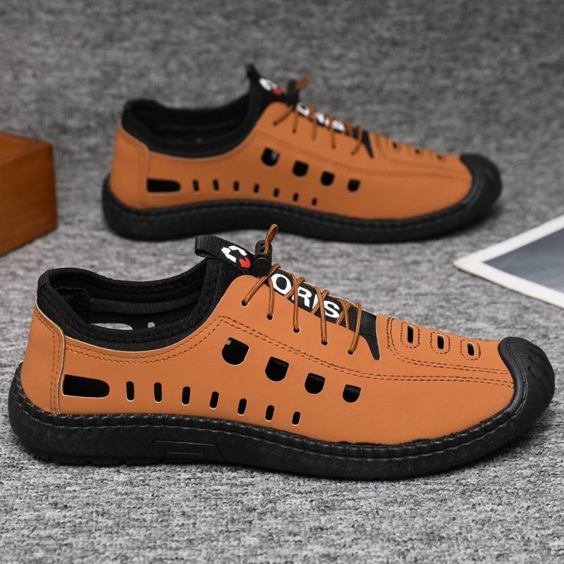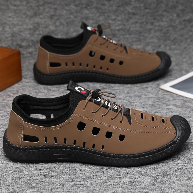 Летняя новая мужская кожаная обувь, обувь для ходьбы по воде, обувь на перфорированной поверхности, повседневная обувь, обувь на мягкой подошве, дышащая, для вождения