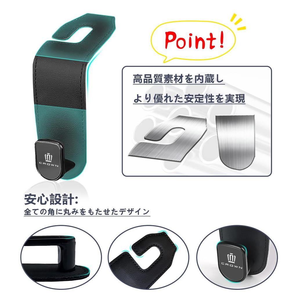 🚗【Высококачественные материалы】: Крючки для подголовника для нового седана Crown (серия 210, серия 220) изготовлены из кожи и металла, обеспечивают приятные ощущения, деликатную долговечность и простой, но элегантный дизайн. Встроенные металлические детали прочные, с охватывающей конструкцией, которая надежно фиксирует края, и однородным, красивым и долговечным дизайном.. (уведомление: Не предназначено для использования со спортивными сиденьями в автомобилях без стоек подголовников.)