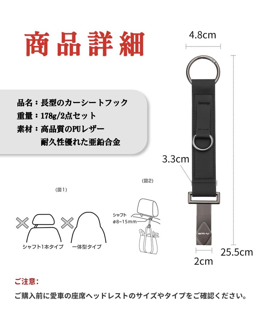 Совместимый подголовник сиденья автомобиля Автомобильный багажник Автомобиль 30 кг Нагрузка Упаковка из 2 шт. Крючки WR-V, Длинные, 25,5 см, Крючки, Крючки, Крючки, Вращение на 360°, Аксессуары, Вместимость,