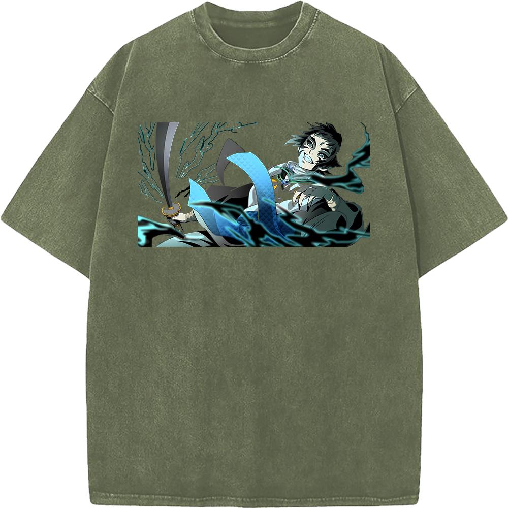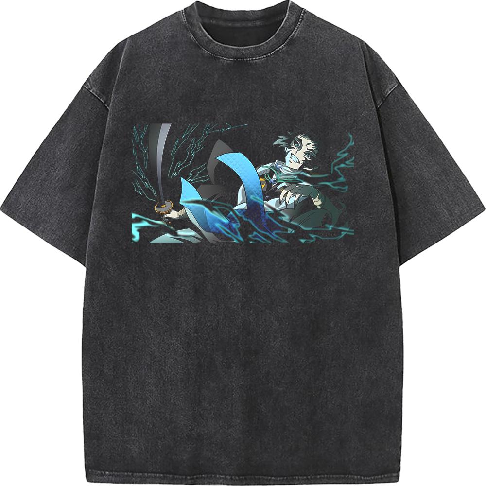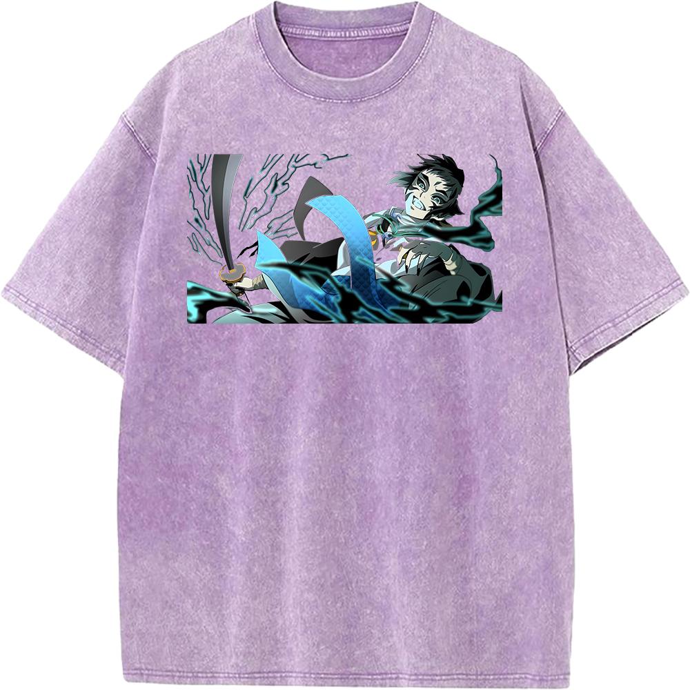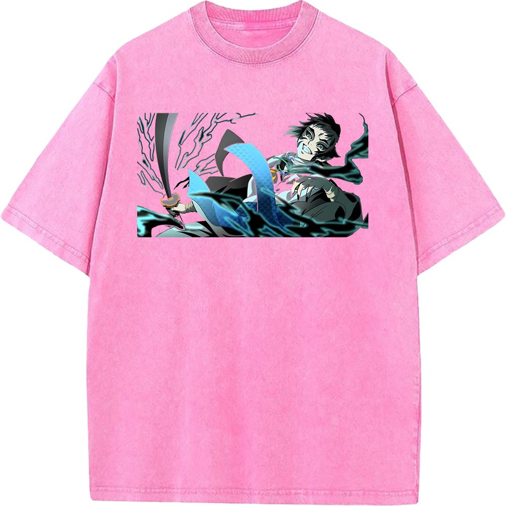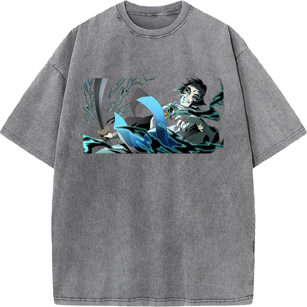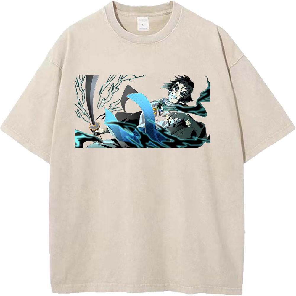 Графическая футболка Kaigaku с вареным эффектом, аниме-футболка Demon Slayer, мужская футболка оверсайз из хлопка, футболка в стиле харадзюку, мужская футболка с коротким рукавом, винтажная футболка